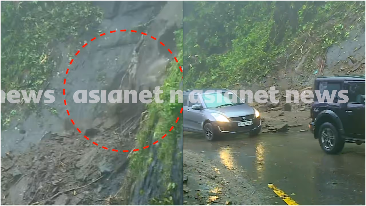 ചെറിയ കല്ലുകള് റോഡിലേക്ക് ഒലിച്ചുവരുന്നുണ്ട്. പാറകഷ്ണങ്ങള് റോഡിലേക്ക് വീഴുന്നതിന്റെ ദൃശ്യങ്ങള് ഏഷ്യാനെറ്റ് ന്യൂസിന് ലഭിച്ചു. റോഡിന്റെ പകുതി വരെ കല്ലുകൾ വീണുകിടക്കുന്നുണ്ട്. കല്ലുകള് നീക്കാത്തതിനാൽ ഈ ഭാഗത്ത് നിലവിൽ വാഹനങ്ങള് ഒറ്റവരിയായിട്ടാണ് പോകുന്നത്. ഒരു വാഹനം കല്ല് പതിക്കാതെ നേരിയ വ്യത്യാസത്തിനാണ് രക്ഷപ്പെട്ടത്.