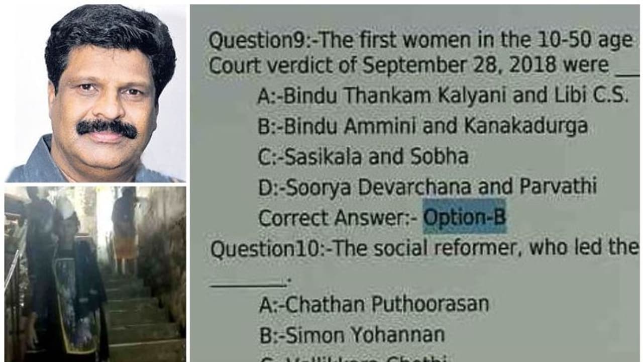 സുപ്രീംകോടതി വിധിക്ക് ശേഷം ശബരിമല ദർശനം നടത്തിയ ആദ്യ യുവതികൾ ആരാണെന്ന പിഎസ്സി പരീക്ഷയിലെ ചോദ്യത്തിനെതിരെ പ്രതിഷേധമുയർന്നിരുന്നു. ആരോഗ്യ വകുപ്പിന് കീഴിലെ അസിസ്റ്റന്റ് പ്രൊഫസർ തസ്തികയിലേക്ക് മാർച്ച് മൂന്നിന് നടന്ന പിഎസ്സി പരീക്ഷയിലാണ് ശബരിമലയെക്കുറിച്ചുള്ള ചോദ്യം. ഉത്തരമായി സൂചിപ്പിച്ചിരിക്കുന്നത് ബിന്ദുവും കനക ദുർഗയെയുമാണ്.