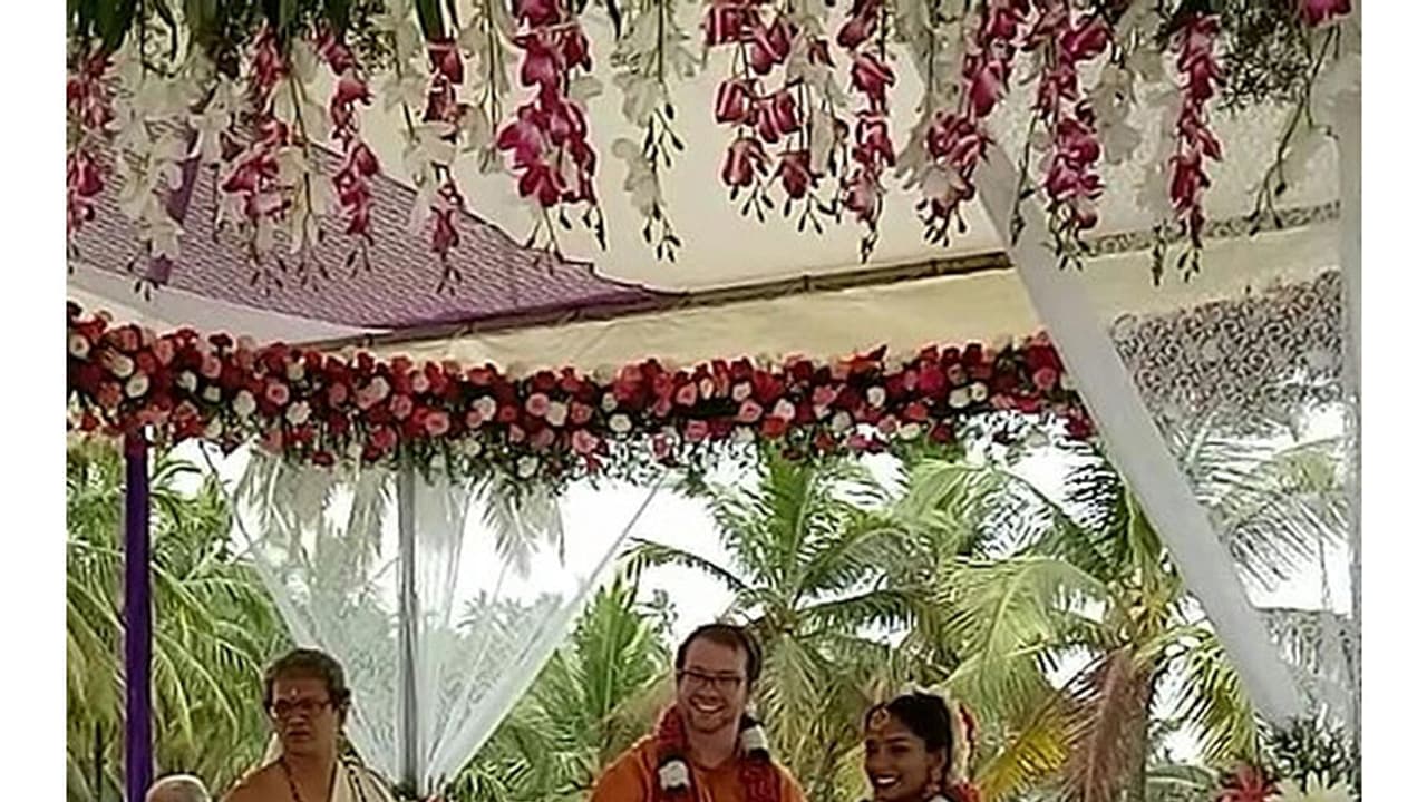 കഴിഞ്ഞ ദിവസം മന്ത്രോച്ചാരണങ്ങളുടെ അകമ്പടിയോടെ ഇരുവരും വരണ മാല്യം കൈമാറി. വരൻറെയും വധുവിൻറെയും മാതാപിതാക്കളടക്കം അമ്പതോളം ആളുകളെ മാത്രമാണ് വിവാഹത്തിന് ക്ഷണിച്ചത്. ഒമ്പത് ദിവസത്തെ അവധിയുമായി കോവളത്തെത്തിയ കമിതാക്കൾ ഭാര്യാ ഭർത്താക്കൻമാരായി നാളെ അമേരിക്കയിലേക്ക് മടങ്ങും.