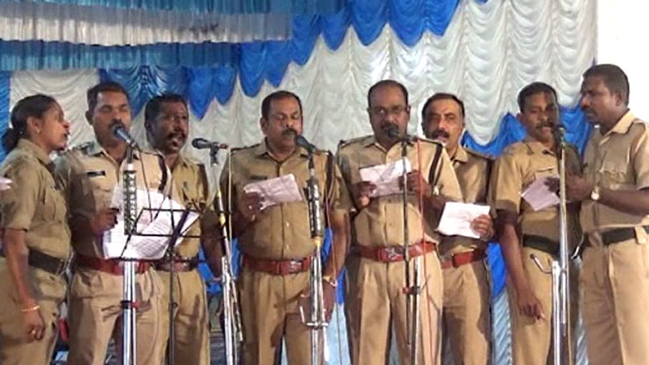സംഗീതം ചെയ്യാനായി ലഭിച്ച വരികള് ആദ്യം വായിച്ചപ്പോള് വലിയ താല്പര്യം തോന്നിയില്ലെന്നും എന്നാല് വരികള്ക്കുള്ളിലെ അര്ത്ഥം മനസ്സിലായതോടെ അതിന്റെ ഭാവ തീവ്രത ഉള്ക്കൊണ്ട് പിന്നീട് വരികള്ക്ക് ഈണം നല്കാന് സാധിച്ചെന്നും പൊലീസ് ഗാനത്തിന് സംഗീതമൊരുക്കിയ അടിമാലി സ്വദേശിയും സംഗീതാധ്യാപകനുമായ കെ പി ഷാജി പറഞ്ഞു. എസ്ഐയും എഎസ്ഐമാരും മൂന്ന് വനിതാ പോലീസുകാരുള്പ്പെടെ പത്ത് പൊലീസ് ഉദ്യോഗസ്ഥര് ചേര്ന്നായിരുന്നു സമ്മേളനവേദിയില് ഗാനമവതരിപ്പിച്ചത്.