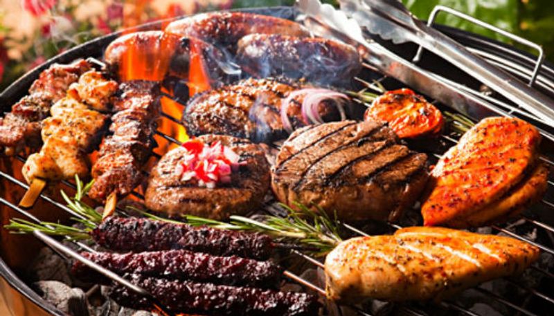 ഉയര്ന്ന ചൂടില് ചുട്ടെടുക്കുന്ന ഇറച്ചി. ഉയര്ന്ന ചൂടില് ഇറച്ചി ചുട്ടെടുക്കുമ്പോള് ഇതില് ഡിഎന്എയെ നശിപ്പിക്കാന് കഴിവുള്ള 'ഹെറ്ററോ സൈക്ലിക് അമിനുകളും' 'പോളിസൈക്ലിക് അരോമാറ്റിക് ഹൈഡ്രോകാര്ബണുകളും' ഉണ്ടാകുന്നു. ഇതാണ് പിന്നീട് ക്യാന്സര് രോഗത്തിന് വഴിയൊരുക്കുന്നത്.