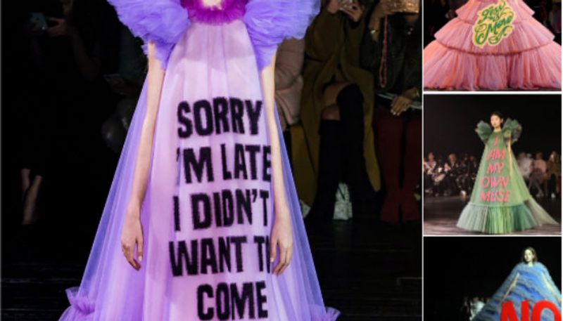 എഴുത്തുകള് ഉള്പ്പെടുത്തിയ വസ്ത്രങ്ങള് മുമ്പേ തരംഗം സൃഷ്ടിച്ച് കടന്നുപോയതാണ്. എങ്കിലും മീമുകളെ ഓര്മ്മിപ്പിക്കുന്ന തരത്തിലുള്ള രസകരമായ പ്രസ്താവനകള് രേഖപ്പെടുത്തിയ ഗൗണുകള് വീണ്ടും ഫാഷന് പ്രേമികള്ക്കിടയില് പുതുമയുണര്ത്തി.