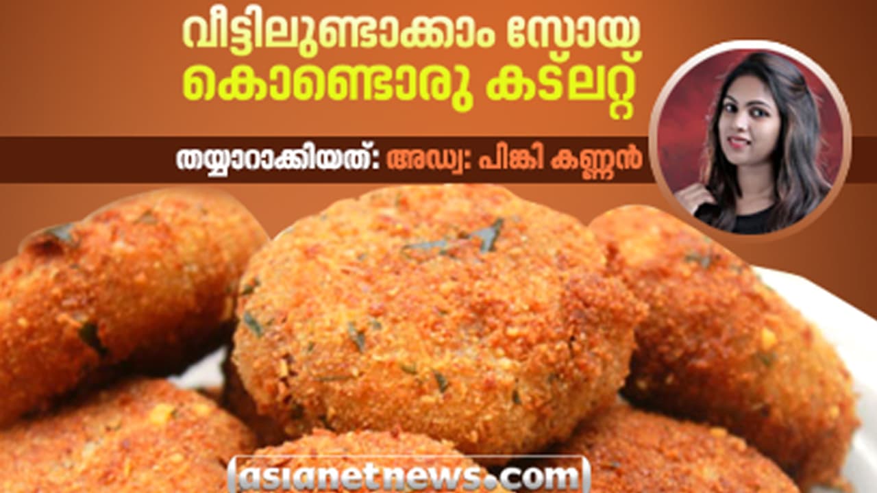 നമ്മള് എല്ലാവരും സോയ കൊണ്ട് പലതരത്തിലുള്ള വിഭവങ്ങള് വീട്ടിലുണ്ടാക്കാറുണ്ട്. സോയ കൊണ്ട് രുചിയുള്ള കട്ലറ്റ് ഉണ്ടാക്കിയാലോ. വെറും അരമണിക്കൂര് കൊണ്ട് സ്വാദൂറും സോയ കട്ലറ്റ് ഉണ്ടാക്കാം.