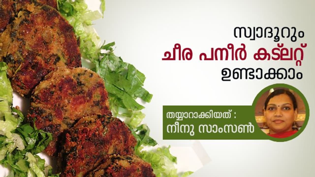 ചിക്കൻ കട്ലറ്റ് , മട്ടൺ കട്ലറ്റ് , ഫിഷ് കട്ലറ്റ് , വെജിറ്റബിൾ കട്ലറ്റ് ഈ പറയുന്ന കട്ലറ്റുകളെല്ലാം നിങ്ങൾ കഴിച്ചിട്ടുണ്ടാകും. ചീരയും പനീറും കൊണ്ടുള്ള കട്ലറ്റ് കഴിച്ചിട്ടുണ്ടോ. വളരെ എളുപ്പം ഉണ്ടാക്കാൻ പറ്റുന്ന കട്ലറ്റാണ് ചീര പനീർ കട്ലറ്റ് . സ്വാദൂറും ചീര പനീർ കട്ലറ്റ് ഉണ്ടാക്കുന്നത് എങ്ങനെയെന്ന് നോക്കാം.