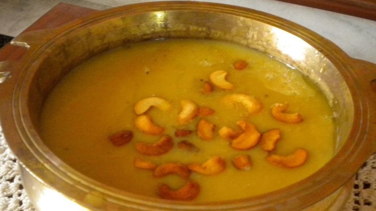 ആദ്യം ഒരു പാത്രത്തില് ചെറുപയര് പരിപ്പ് ഇളം ബ്രൗൺ നിറമാകുന്നത് വരെ വറുക്കുക. തണുത്തതിനുശേഷം വറുത്ത പരിപ്പ് ആറു മണിക്കൂര് വെള്ളത്തില് കുതിര്ക്കണം . അതിനു ശേഷം നന്നായി കഴുകിയ പരിപ്പ് തേങ്ങയുടെ മൂന്നാം പാലില് വേവിയ്ക്കുക. ശര്ക്കര വേറെ ഒരു പാത്രത്തില് കുറച്ച് വെള്ളമൊഴിച്ച് ഉരുക്കുക. വെന്ത പരിപ്പിലേയ്ക്ക് ശര്ക്കരപാനി ഒഴിക്കുക.