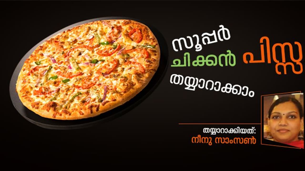 വളരെ എളുപ്പം ഉണ്ടാക്കാൻ പറ്റുന്ന വിഭവമാണ് ചിക്കൻ പിസ്സ. സ്വാദൂറും ചിക്കൻ പിസ്സ തയ്യാറാക്കുന്നത് എങ്ങനെയെന്ന് നോക്കാം.
