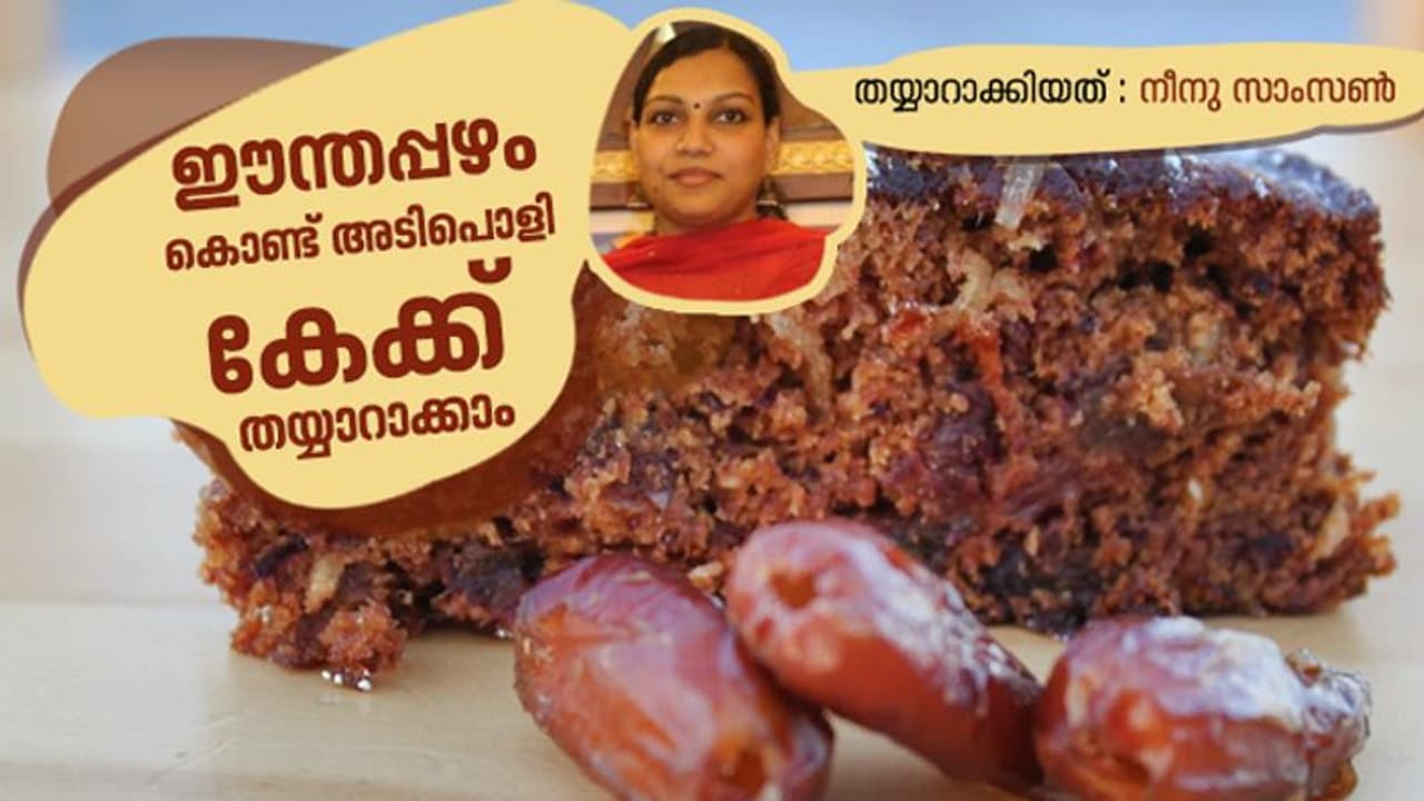 ഈന്തപ്പഴം കൊണ്ട് പലതരത്തിലുള്ള വിഭവങ്ങൾ ഉണ്ടാക്കാറുണ്ട്. ഈന്തപ്പഴം പായസം, ഈന്തപ്പഴം ഹൽവ, ഈന്തപ്പഴം ഷേക്ക് ഇങ്ങനെ നിരവധി വിഭവങ്ങളുണ്ട്. ഈന്തപ്പഴം കൊണ്ടുള്ള കേക്ക് കഴിച്ചിട്ടുണ്ടോ. രുചിയുള്ള ഈന്തപ്പഴം കേക്ക് ഉണ്ടാക്കുന്നത് എങ്ങനെയെന്ന് നോക്കാം.