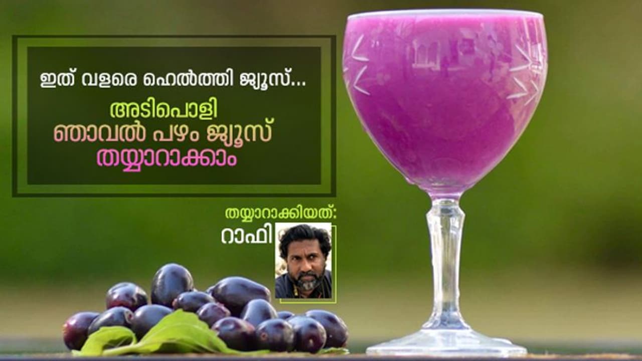 നമ്മുടെ നാട്ടിന്പുറങ്ങളില് ധാരാളമായി കണ്ടുവരുന്ന ഒന്നാണ് ഞാവല്പ്പഴം. എല്ലാവിധ ആരോഗ്യപ്രശ്നങ്ങൾക്കുമുള്ള പ്രതിവിധിയാണ് ഞാവല്പ്പഴം. രക്തത്തിലെ ഹീമോഗ്ലോബിന്റെ അളവ് വര്ധിപ്പിക്കാനും രക്തസമ്മര്ദ്ദത്തെ നിയന്ത്രിച്ച് നിര്ത്താനും ഞാവല്പ്പഴം വളരെ നല്ലതാണ്. കാത്സ്യവും വിറ്റാമിനുകളും നിറഞ്ഞ ഞാവല്പ്പഴം ജ്യൂസ് വീട്ടിൽ വളരെ എളുപ്പം തയ്യാറാക്കാം. സ്വാദൂറും ഞാവല്പ്പഴം ജ്യൂസ് തയ്യാറാക്കുന്നത് എങ്ങനെയെന്ന് നോക്കാം.