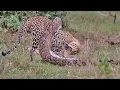 കെനിയയിലെ മാസായി മാരാ ട്രയാംഗിള് റിസര്വില് നിന്ന് കഴിഞ്ഞ ദിവസമാണ് ആരെയും ഞെട്ടിപ്പിക്കുന്ന വീഡിയോ ലഭിച്ചത്. കൂറ്റന് പെരുമ്പാമ്പും പുള്ളിപ്പുലിയും നേര്ക്കുനേര് ഏറ്റുമുട്ടുന്നു. ഏറെ നേരത്തെ പോരാട്ടത്തിന് ശേഷം പുള്ളിപ്പുലിയുടെ ക്രൗര്യത്തിന് മുന്നില് പെരുമ്പാമ്പ് അടിയറവ് പറഞ്ഞു. ഡെയ്ലി മെയിലാണ് ആരെയും ഞെട്ടിപ്പിക്കുന്നതും അപൂര്വമായതുമായ വീഡിയോ പുറത്തുവിട്ടത്. പെരുമ്പാമ്പിന്റെ ശക്തമായ പിടിത്തത്തില് നിന്ന് ശ്രമകരമായി രക്ഷപ്പെട്ട പുള്ളിപ്പുലി പെരുമ്പാമ്പിന്റെ തലയില് കടിച്ച് പരിക്കേല്പ്പിച്ചു. പെരുമ്പാമ്പ് കൊല്ലപ്പെട്ടിരിക്കാനാണ് സാധ്യതയേറെയെന്ന് ദൃക്സാക്ഷികള് പറഞ്ഞു.