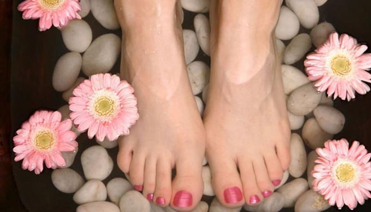1. ആദ്യം പാദങ്ങളിലെ നെയില്പൊളിഷ് മാറ്റി, നഖങ്ങള് നല്ല ആകൃതിയില് വെട്ടിവൃത്തിയാക്കുക. ഒരു ചെറിയ ബക്കറ്റില് ചെറുചൂട് വെള്ളം എടുക്കുക. അതിലേക്ക് രണ്ട് പാതങ്ങളും മുക്കി വെക്കുക. ഇതിലേക്ക് കുറച്ച് കല്ലുപ്പ് ഇടുക. കുറച്ച് സമയം പാദങ്ങള് ഇങ്ങനെ മുക്കിവെക്കുക. 20 മിനിറ്റിന് ശേഷം പാദങ്ങള് മാറ്റുക. ശേഷം നല്ല വൃത്തിയുളള ടൌവല് ഉപയോഗിച്ച് പാദങ്ങള് തുടക്കുക.
