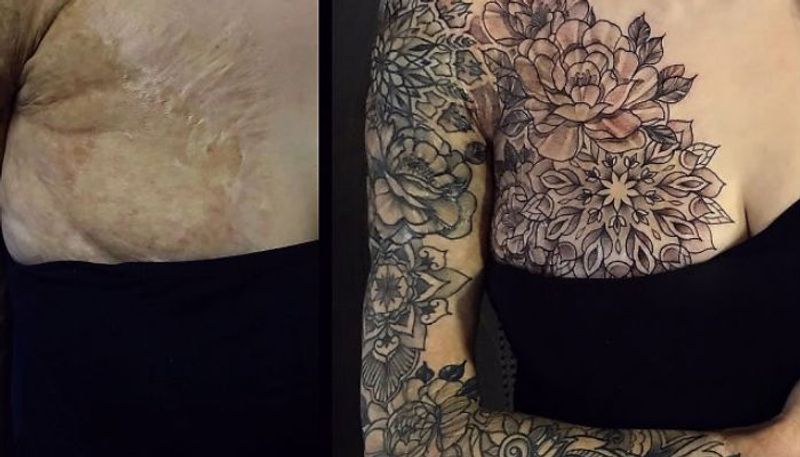 സ്തനാര്ബുദത്തെ തുടര്ന്നുണ്ടാകുന്ന പാടുകള് മാത്രമല്ല, ചെറുപ്പത്തിലെ വീഴ്ച, അല്ലെങ്കില് അപകടം, അതുമല്ലെങ്കില് പൊള്ളിയത്... ഇങ്ങനെ ഏത് പരിക്കിന്റെ പാടുകളിലും ടാറ്റൂ ചെയ്യാമെന്നാണ് ഡിസൈനര്മാര് പറയുന്നത്. ഇത് ചെയ്യാനും ആദ്യം സൂചിപ്പിച്ചത് പോലെ പ്രത്യേക പ്രാവീണ്യം ആവശ്യമാണ്.