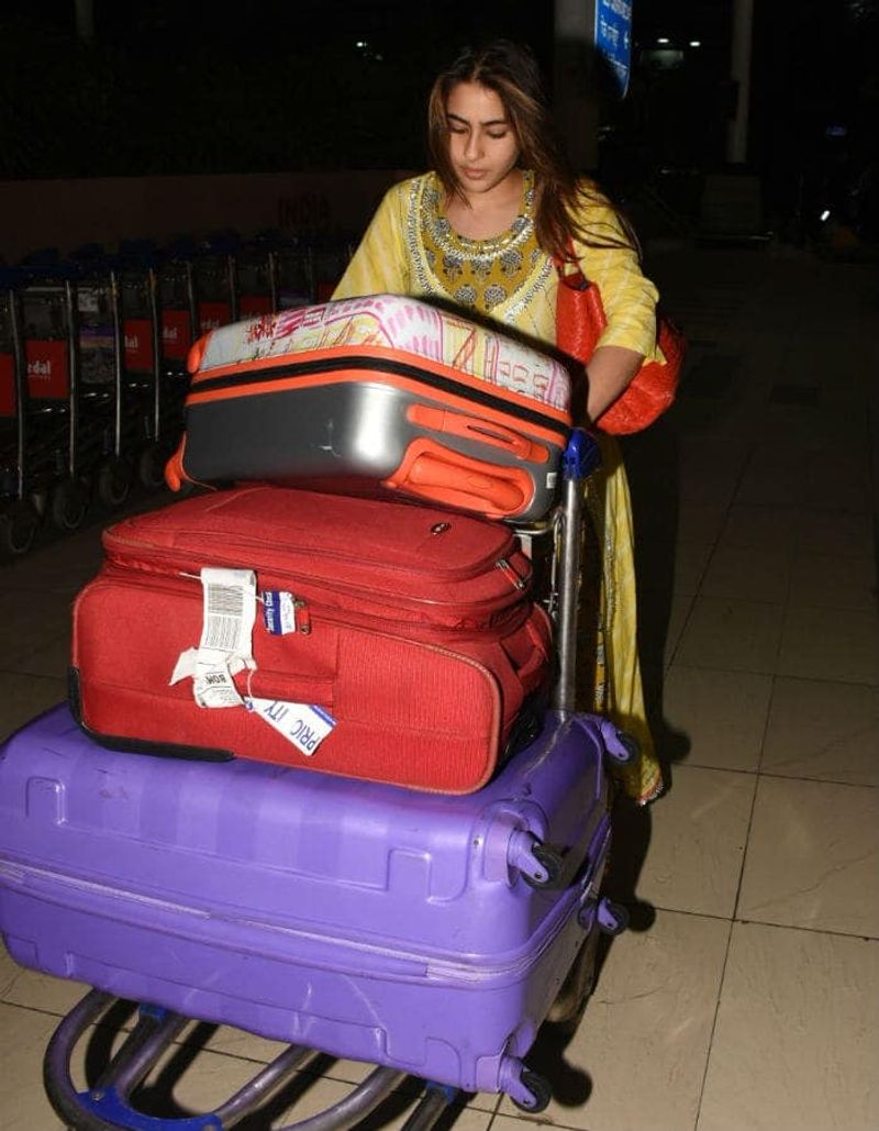 വിലകൂടിയ വസ്ത്രങ്ങളും വാഹനങ്ങളും പരിചരിക്കാന് ചുറ്റും ആളുകളുമായി രാജകീയ ജീവിതമാണ് പല സിനിമാ താരങ്ങളും നയിക്കുന്നത്. എയര്പോര്ട്ടില് പോലും താരങ്ങളുടെ ഈ ആഡംബരം കാണാം. പല താരങ്ങളുടെ ട്രെന്ഡി എയര്പോര്ട്ട് ലുക്കുകള് സോഷ്യല് മീഡിയകളില് വൈറലാകാറുമുണ്ട്. എന്നാല് അതില് നിന്നെല്ലാം വ്യത്യസ്തയാണ് സെലിബ്രൈറ്റി കിഡ് സാറ അലി ഖാന്.