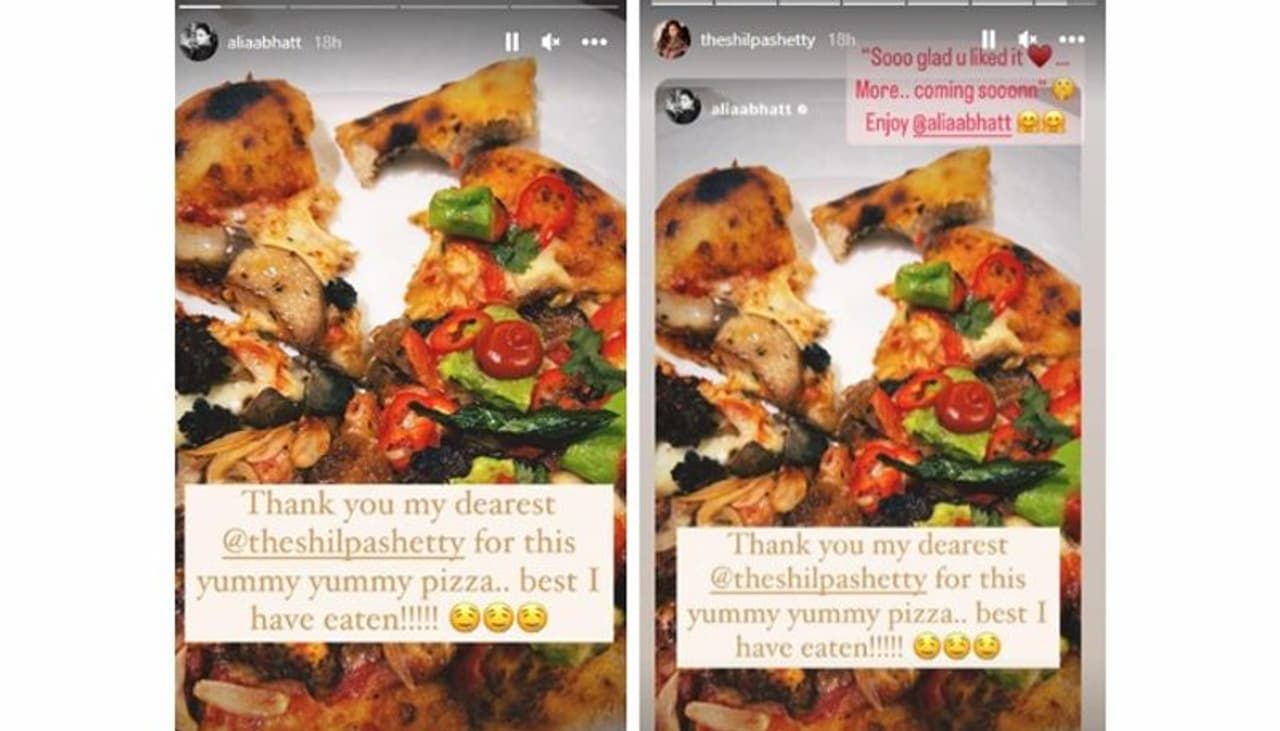 പിസ അയച്ചുതന്നതിന് നന്ദി അറിയിക്കുന്നതിനൊപ്പം തന്നെ കഴിച്ചതില് വച്ച് ഏറ്റവും രുചിയുള്ള പിസ എന്ന് അഭിപ്രായവും ചിത്രത്തോടൊപ്പം രേഖപ്പെടുത്തിയിട്ടുണ്ട് ആലിയ. ഈ സ്റ്റോറി തന്നെ പിന്നീട് ശില്പയും ഇൻസ്റ്റയില് പങ്കുവച്ചു. തനിക്ക് അത് ഇഷ്ടപ്പെട്ടുവെന്ന് അറിഞ്ഞതില് ഒരുപാടൊരുപാട് സന്തോഷം. ഇനിയും കൂടുതല് വരാനിരിക്കുന്നതേയുള്ളൂ... എൻജോയ് എന്നെഴുതി കെട്ടിപ്പിടുത്തത്തെ സൂചിപ്പിക്കുന്ന സ്മൈലികളും ചേര്ത്തായിരുന്നു ശില്പ ഇത് പങ്കുവച്ചത്.