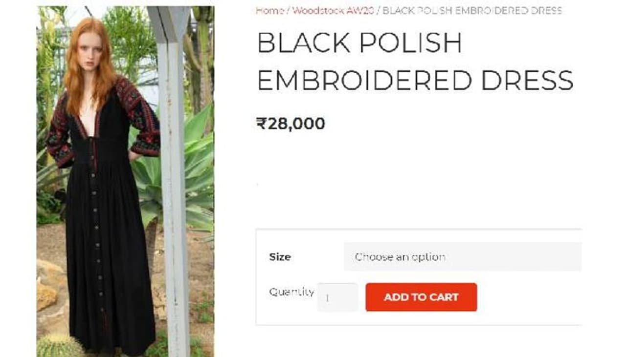 കറുപ്പില് പിങ്ക് നിറത്തിലുള്ള എമ്പ്രോയ്ഡറി വര്ക്കുകളുള്ള ഈ ഡ്രസ്സിന്റെ വില 28,000 രൂപയാണ്.