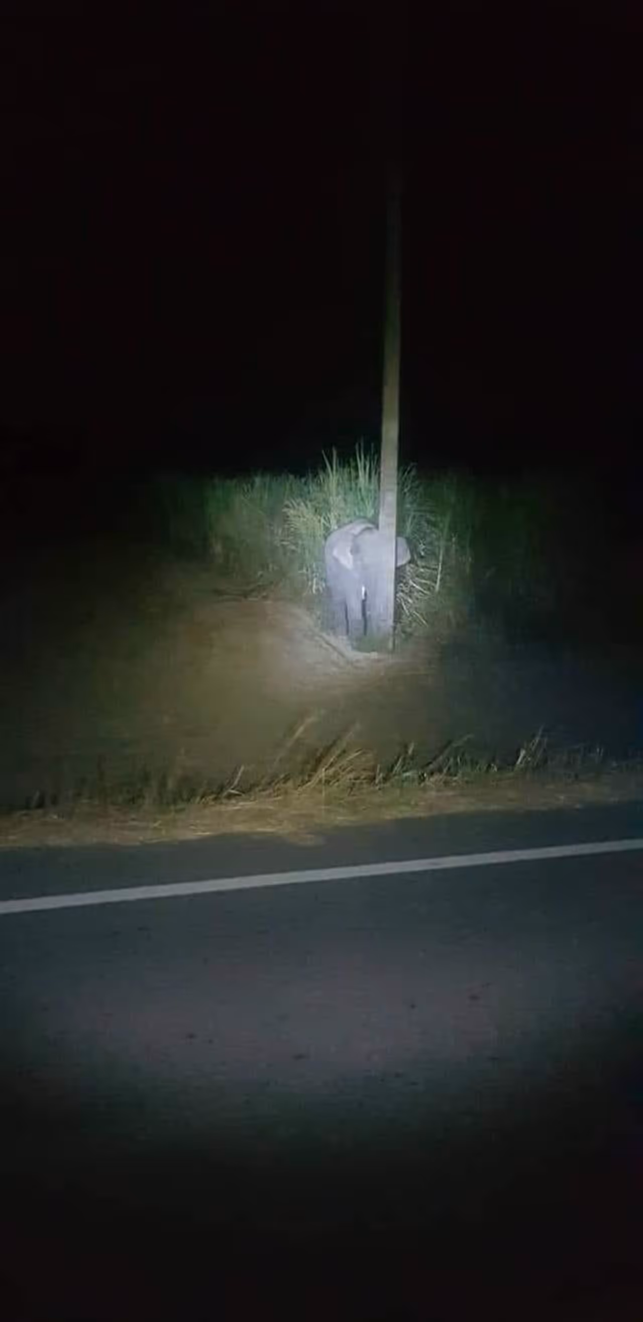 ഈ കുട്ടിയാന കർഷകനെ കണ്ടപ്പോൾ ഒരു പോസ്റ്റിന് പിന്നില് ഒളിക്കാന് ശ്രമിക്കുന്നത് ചിത്രത്തിൽ കാണാം. ആനക്കുട്ടി നിൽക്കുന്ന സ്ഥലത്തേക്ക് കര്ഷകന് ലൈറ്റടിക്കുമ്പോൾ പിടിക്കപ്പെടാതിരിക്കാന് ചെറിയൊരു തൂണിന്റെ മറവില് ഒളിക്കാൻ ശ്രമിക്കുന്നു.