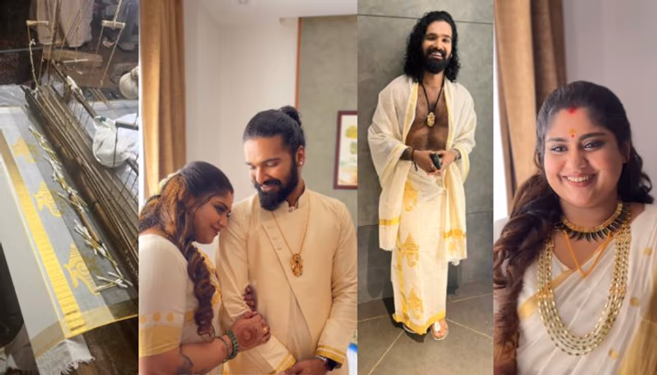വിവാഹ ദിവസം ഭാഗ്യ ധരിച്ച സെറ്റും മുണ്ടും, വരന് ശ്രേയസ്സ് ധരിച്ച മുണ്ടും തോള്മുണ്ടും കുര്ത്തയും ഡിസൈന് ചെയ്തത് ബിഗ് ബോസ് ഫെയിം ശോഭ വിശ്വനാഥ് ആണ്. ശ്രേയസിന്റെ തോൾ മുണ്ടിൽ ശംഖാണ് നെയ്തെടുത്തിരിക്കുന്നത്. മുഴുവനായും കസവ് കൊണ്ടാണ് ശംഖ് നെയ്തെടുത്തതും ശോഭ വിശ്വനാഥ് ഏഷ്യാനെറ്റ് ന്യൂസ് ഓണ്ലൈനിനോട് പറഞ്ഞു. വിവാഹത്തിനു തലേദിവസം ഭാഗ്യ ധരിച്ച കസവ് ധാവണിയും ഡിസൈൻ ചെയ്തത് ശോഭയുടെ വീവേഴ്സ് വില്ലേജാണ്. ഇന്ന് തിരുവനന്തപുരത്ത് നടക്കാനിരിക്കുന്ന വിവാഹ സത്കാരത്തിലും ഭാഗ്യക്കായി സാരി ഡിസൈന് ചെയ്തത് ശോഭയാണ്. റാണി പിങ്ക് സാരിയാകും ഇന്ന് ഭാഗ്യ ധരിക്കുക.