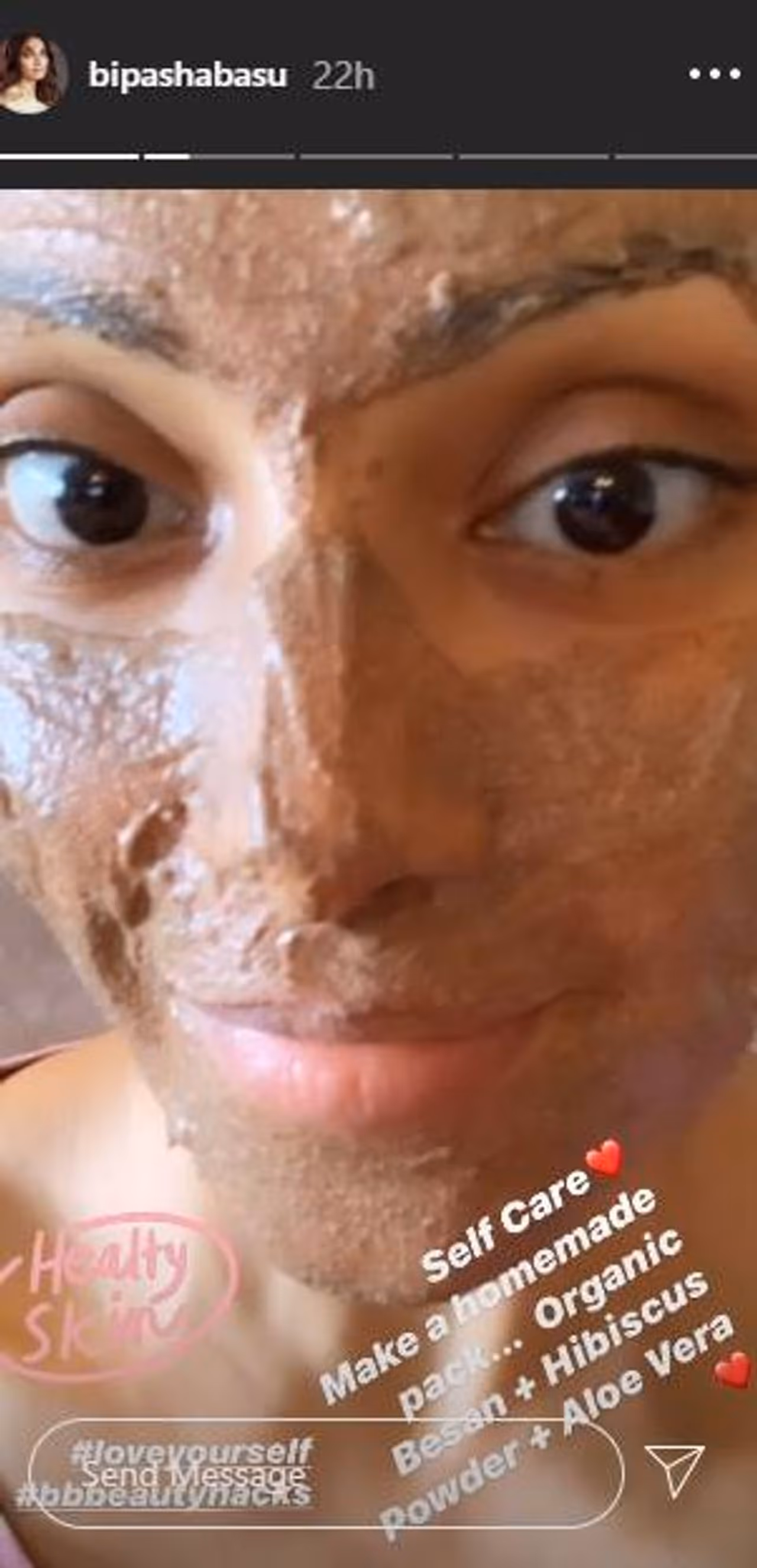 കടലമാവ്, ചെമ്പരത്തിപ്പൊടി, കറ്റാർവാഴ എന്നിവ കൊണ്ടു ഉണ്ടാക്കിയതാണ് ഈ ഫേസ് പാക്ക്. ആരോഗ്യമുള്ള ചര്മ്മത്തിന് എന്നാണ് ചിത്രത്തോടൊപ്പം ബിപാഷ കുറിച്ചത്.