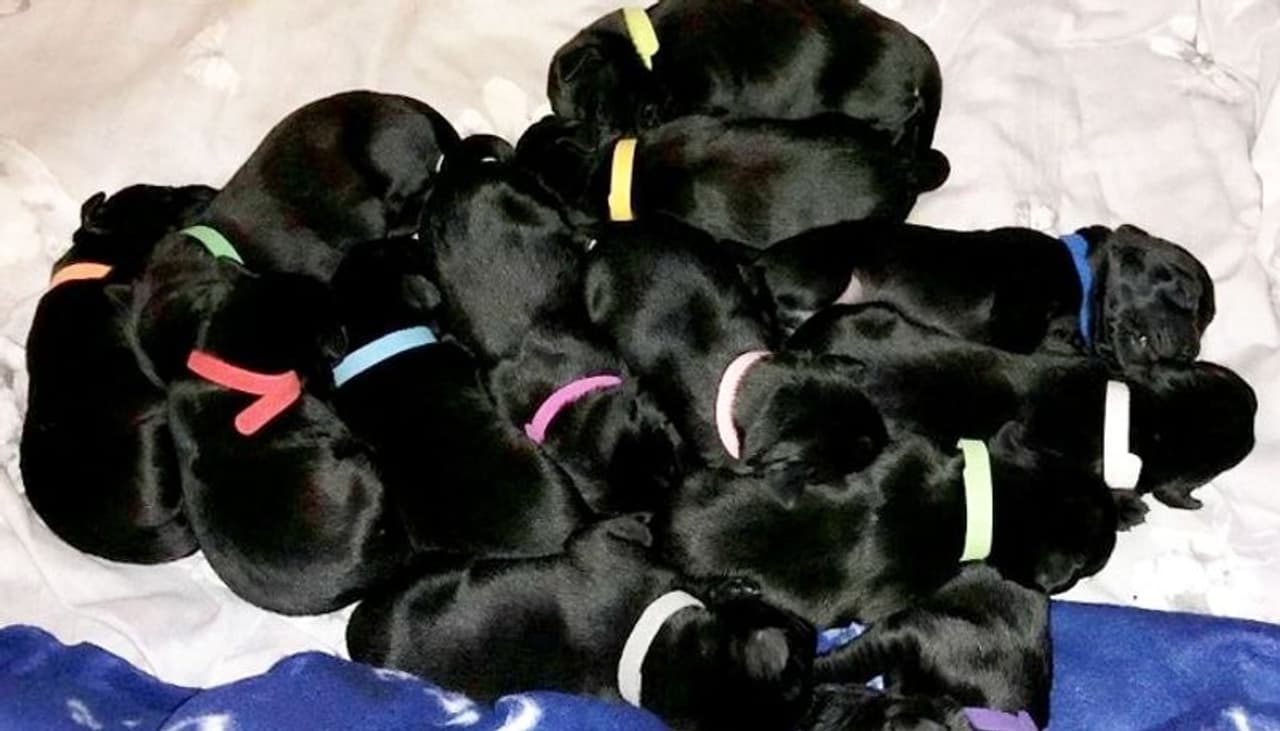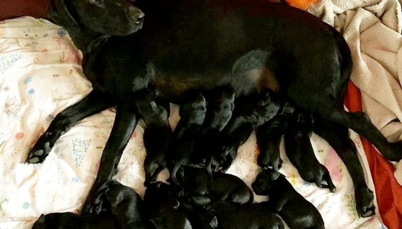 2014ല് സ്കോട് ലാന്റില് ഇതുപോലെ ഒരു ലാബിന് 15 കുഞ്ഞുങ്ങള് വരെ പിറന്നു. (ചിത്രം താഴെ)