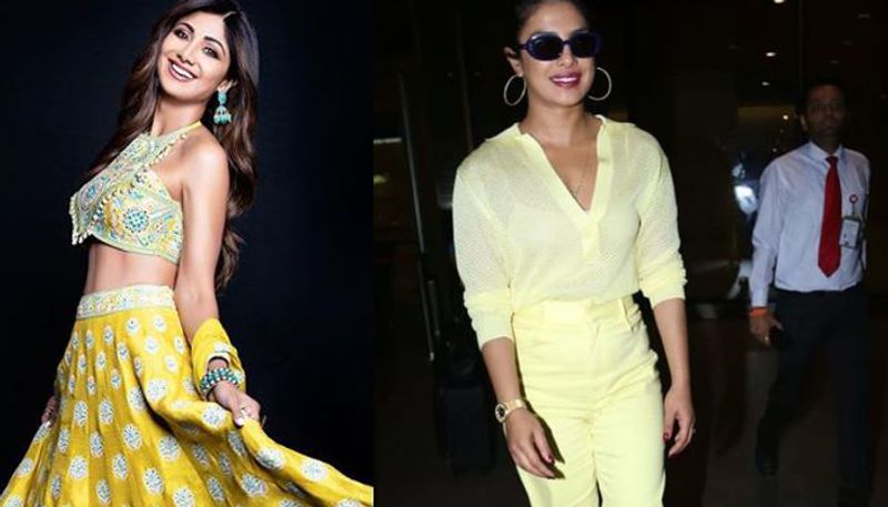മഞ്ഞയും പച്ചയും ഷേഡുള്ള വ്യത്യസ്തമായ എംബ്രോയിഡറി വർക്കുകളിൽ നിറഞ്ഞ ലഹങ്കയാണ് ശിൽപാ ഷെട്ടി ധരിച്ചത്. സഹോദരൻ സിദ്ധാർഥ് ചോപ്രയുടെ വിവാഹത്തിനായി ഇളം മഞ്ഞ നിറത്തിലുള്ള വ്യത്യസ്തമായ വസ്ത്രം ധരിച്ചാണ് പ്രയങ്കാ എത്തിയത്.