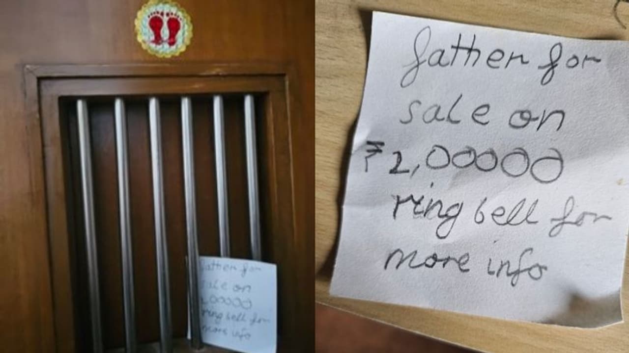 അച്ഛൻ തന്നെയാണ് സംഗതി ഫോട്ടോ എടുത്ത് സോഷ്യല് മീഡിയിയലൂടെ പങ്കുവച്ചത്. എട്ട് വയസ് മാത്രമുള്ള പെണ്കുട്ടിയാണ് ഇങ്ങനെ വ്യത്യസ്തമായൊരു ചിന്തയില് പെട്ടത്. അച്ഛനെ വില്ക്കാനുണ്ട്, വില രണ്ട് ലക്ഷം, കൂടുതല് വിവരങ്ങള്ക്ക് കോളിംഗ് ബെല്ലടിക്കുക എന്നാണ് നോട്ടീസില് കാണുന്നത്.