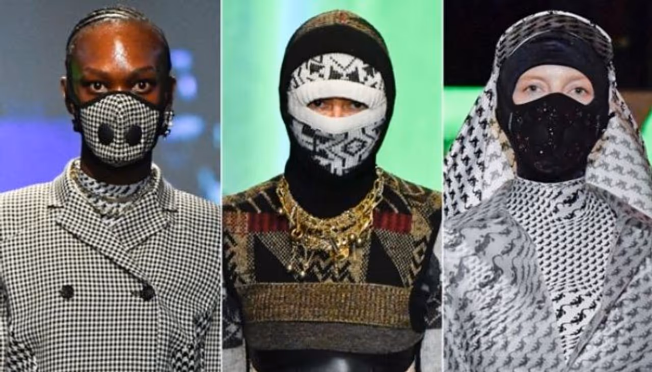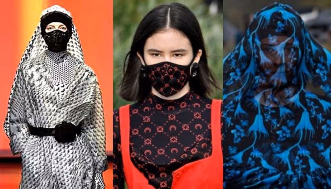 വസ്ത്രങ്ങളോട് ചേര്ന്ന മാസ്ക്കുകളാണ് മോഡലുകള് ധരിച്ചത്. മോഡലുകള് ധരിച്ച വസ്ത്രത്തോടൊപ്പം അവരുടെ മാസ്ക്കുകളും ഫാഷന് ലോകത്തിന്റെ ശ്രദ്ധ പിടിച്ചുപറ്റി. വസ്ത്രങ്ങൾക്ക് അനുയോജ്യമായ മാസ്ക്കുകളാണ് പല ഡിസൈനര്മാരും ചെയ്തത് എങ്കിലും അതില് എടുത്തുപറയേണ്ടത് ഫ്രഞ്ച് ഫാഷൻ ഡിസൈനർ മറിൻ സെറിയുടേതാണ്.