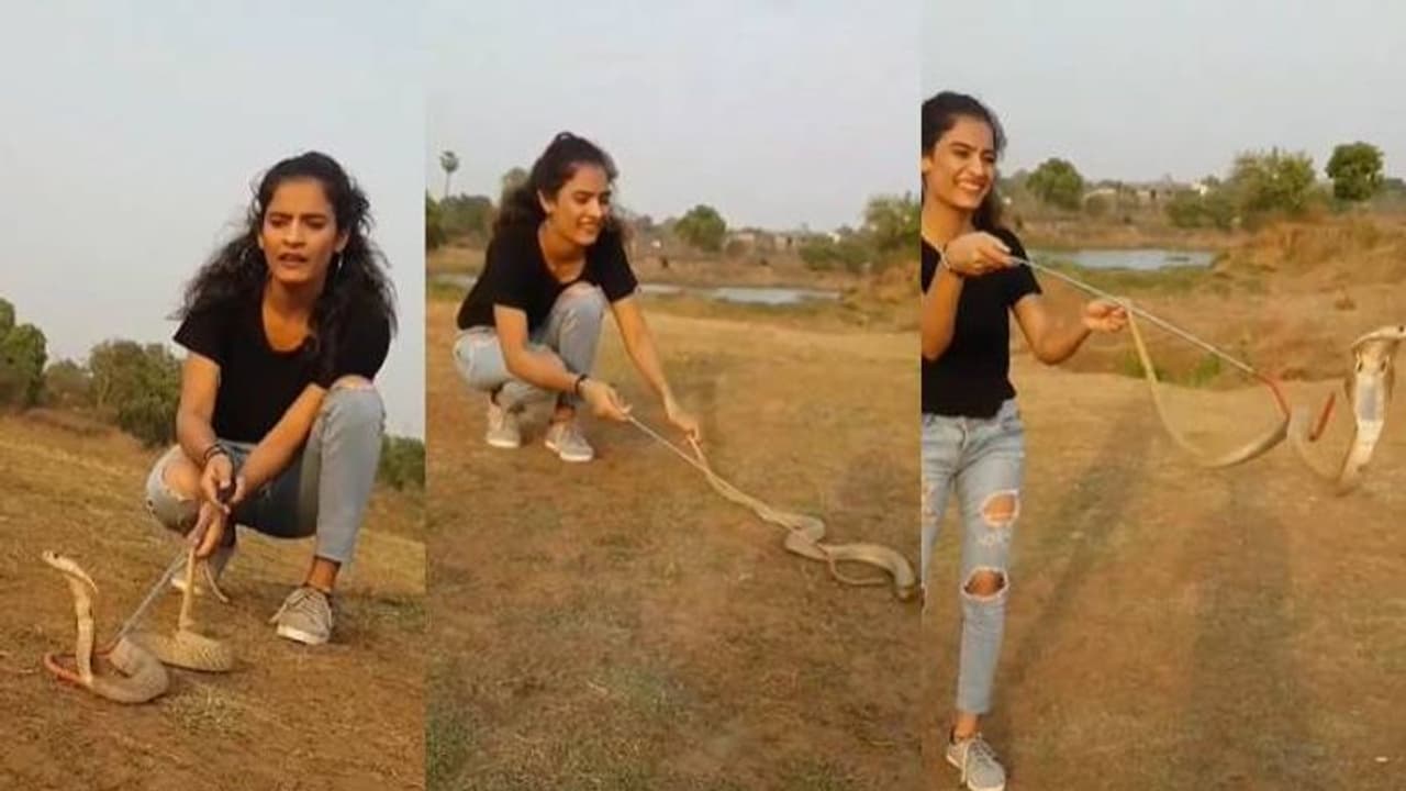 മൂര്ഖന് പാമ്പിനെ കയ്യിലെടുത്ത് അഭ്യാസ പ്രകടനം നടത്തുന്ന ശ്വേതയുടെ വീഡിയോ ആണ് ഇപ്പോള് സോഷ്യല് മീഡിയയില് വൈറലാകുന്നത്.
