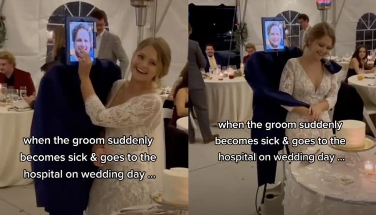 വരന്റെ അസാന്നിധ്യത്തിൽ വിവാഹം ആഘോഷമാക്കിയിരിക്കുകയാണ് വധു. ഭക്ഷ്യവിഷബാധയേറ്റ് വരൻ ആശുപത്രിയിലായതിനെ തുടർന്നാണ് വ്യത്യസ്തമായ രീതിയിൽ വിവാഹം നടന്നത്. വരന്റെയും വധുവിന്റെയും പ്ലാനിലാണ് സംഭവം ഗംഭീരമായത്. ചക്രം ഘടിപ്പിച്ച ഒരു തൂണിനെ വരന്റെ വേഷം ധരിപ്പിച്ച് വിവാഹ വേദിയിലേയ്ക്ക് എത്തിച്ചു. ഒപ്പം ഒരു ഐപാഡിൽ വരന്റെ ചിത്രം ഈ തൂണിൽ ഘടിപ്പിച്ചു. അങ്ങനെ വിവാഹം വളരെ വിചിത്രമായി നടന്നു.