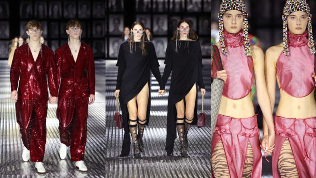 രസകരമായ ആശയങ്ങൾ കൊണ്ട് ഇടയ്ക്കിടെ ഫാഷന് ലോകത്തെ അദ്ഭുതപ്പെടുത്തുന്നതാണ് ഇറ്റാലിയൻ ഫാഷന് ആഡംബര ബ്രാൻഡായ ഗൂച്ചിയുടെ (Gucci) സ്റ്റൈൽ. 'പുല്ലിന്റെ കറ' പിടിച്ച പോലെ തോന്നുന്ന ഗൂച്ചി ജീൻസൊക്കെ അത്തരത്തില് ഫാഷന് ലോകത്ത് ചര്ച്ചയായതാണ്. ഇപ്പോഴിതാ മിലാൻ ഫാഷന് വീക്കിന്റെ റാംപിൽ 68 ജോഡി ഇരട്ട മോഡലുകളെ അവതരിപ്പിച്ചിരിക്കുകയാണ് ഗൂച്ചി.