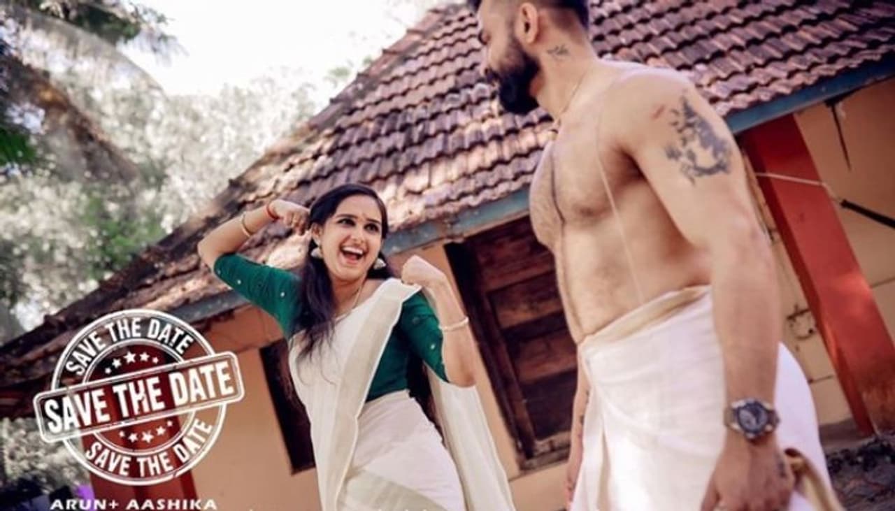 അരുണിന്റെയും ആഷികയുടെ സേവ് ദ ഡേറ്റ് ചിത്രങ്ങളാണ് ഇപ്പോള് സോഷ്യല് മീഡിയയില് ശ്രദ്ധ നേടുന്നത്. ഷര്ട്ടില്ലാതെ മസില് പെരുക്കിയെത്തുന്ന കല്യാണ ചെക്കനാണ് ചിത്രത്തിലെ ഹൈലൈറ്റ്. ഒപ്പം നാടന് ലുക്കിലാണ് കല്യാണ പെണ്ണിന്റെ വരവ്.