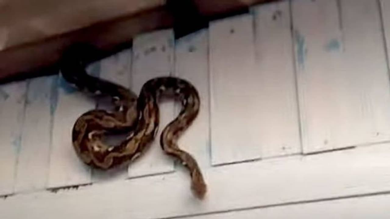 അയല്വാസികള് രക്ഷാപ്രവർത്തകരെ വിവരമറിയിക്കുകയായിരുന്നു. കുറച്ചധികം ബുദ്ധിമുട്ടിയാണ് രക്ഷാപ്രവർത്തകർ പെരുമ്പാമ്പിനെ മച്ചിന് മുകളില് നിന്നും പുറത്തെത്തിച്ചത്.