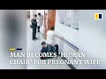 മണിക്കൂറോളം വാതിലിന് മുന്നിൽ നിന്ന ഗർഭിണിയായ ഭാര്യയ്ക്ക് ഭർത്താവ് ഒരു ബോട്ടിൽ വെള്ളവും നൽകി. കാൽ കഴച്ച് തളർന്നു വീഴാറായപ്പോഴും പോലും പലരും കസേര നൽകിയില്ല. ഇത് കണ്ട ഭർത്താവ് സ്വന്തം മുതുക് കസേരയാക്കി മാറ്റുകയായിരുന്നു.