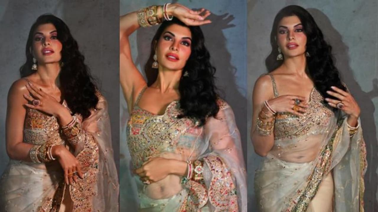 ഐവറി വൈറ്റ് ഓര്ഗന്സ സാരിയാണ് ജാക്വിലിന് ധരിച്ചത്. മള്ട്ടികളര് സീക്വിന് സ്ലിപ്പ് സില്വര് ബ്ലൗസാണ് ഇതിനൊപ്പം താരം പെയര് ചെയ്തത്. ജുംകയും വളകളുമാണ് താരത്തിന്റെ ആക്സസറീസ്. ഫെസ്റ്റിവല് മേക്കപ്പാണ് താരം തിരഞ്ഞെടുത്തത്. ചിത്രങ്ങള് ജാക്വിലിന് തന്നെയാണ് തന്റെ ഇന്സ്റ്റഗ്രാമിലൂടെ പങ്കുവച്ചത്. ചിത്രങ്ങള്ക്ക് മികച്ച പ്രതികരണമാണ് ആരാധകരുടെ ഭാഗത്തു നിന്നും ലഭിക്കുന്നത്. സാരിയില് താരം സുന്ദരിയായിരിക്കുന്നു എന്നാണ് ആരാധകരുടെ കമന്റ്.