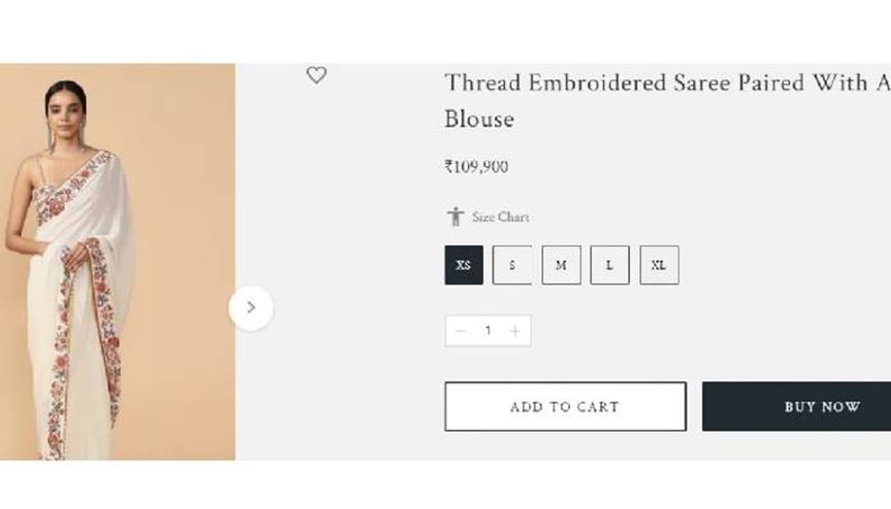 കോർസെറ്റ് സ്റ്റൈൽ ബ്ലൗസ് ആണ് സാരിക്കൊപ്പം താരം പെയർ ചെയ്തത്. 1,09,900 രൂപയാണ് സാരിയുടെ വില.
