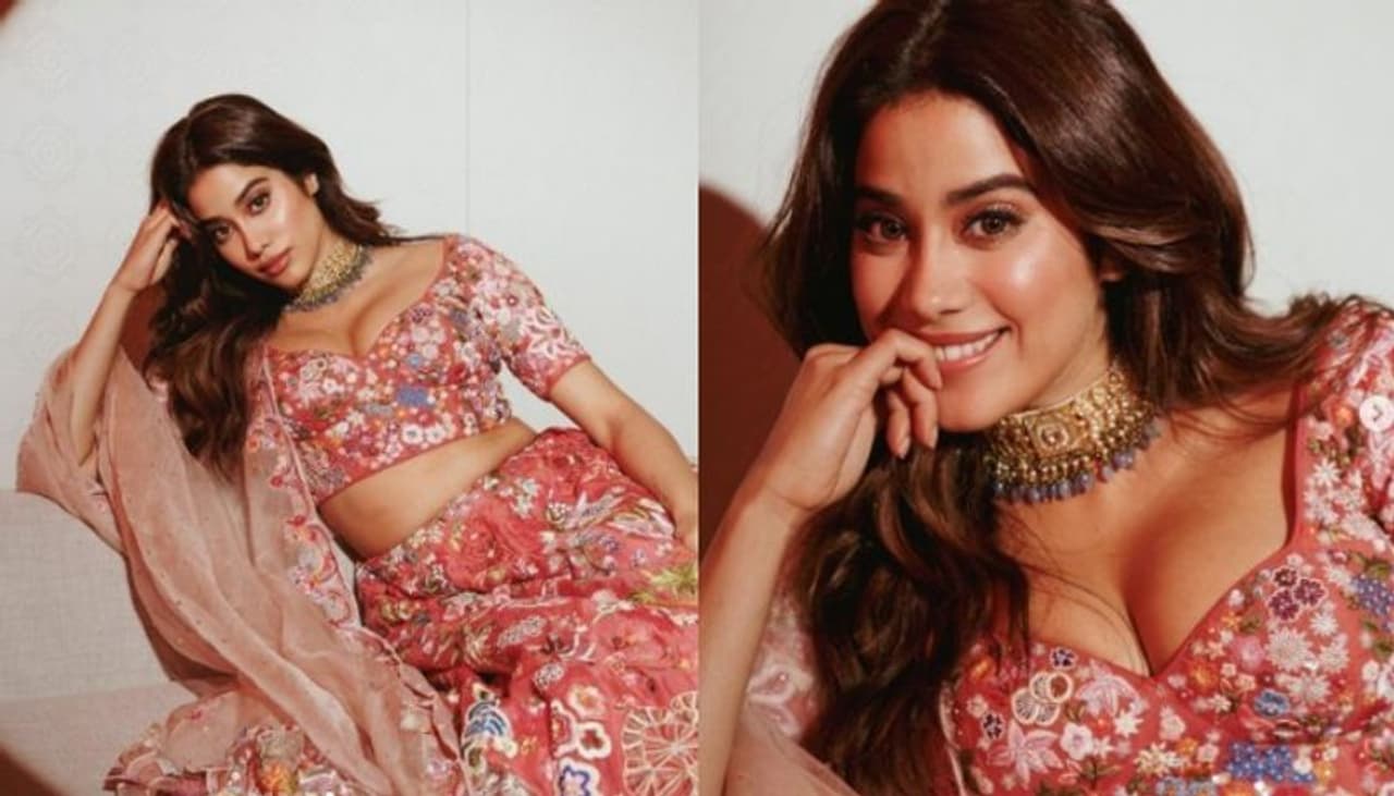 ജാന്വി തന്നെയാണ് ചിത്രങ്ങള് തന്റെ ഇന്സ്റ്റഗ്രാമിലൂടെ പങ്കുവച്ചത്. ഫ്ലോറൽ ഡിസൈനിലുള്ള പിങ്ക് ചോളി ലെഹങ്കയില് മനോഹരിയായിരിക്കുകയാണ് ജാൻവി. ഡീപ് നെക്കുള്ള ബ്ലൗസ് ആണ് ഔട്ട്ഫിറ്റിന്റെ പ്രത്യേകത.