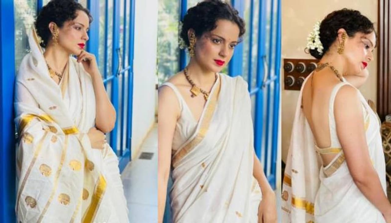 ഇപ്പോഴിതാ കങ്കണയുടെ ചില ചിത്രങ്ങളാണ് സോഷ്യല് മീഡിയയില് വൈറലാകുന്നത്. സെറ്റ് സാരിയില് സുന്ദരിയായിരിക്കുകയാണ് കങ്കണ. വൈറ്റില് ഗോള്ഡ് ബോര്ഡറുള്ള സെറ്റ് സാരിയോടൊപ്പം സ്ലീവ് ലെസ് ബ്ലൗസ് ആണ് താരം ധരിച്ചത്.