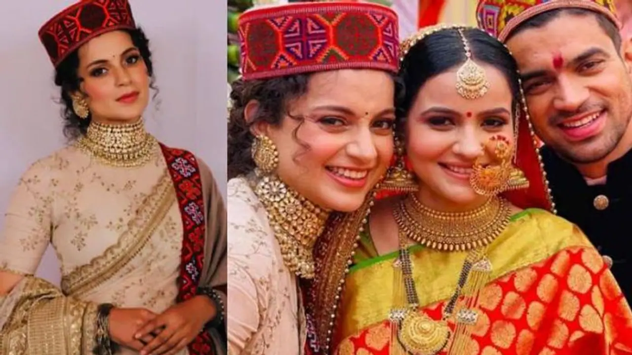 സഹോദരന്റെ വിവാഹത്തിന് ഗുജറാത്തി ബാന്ദ്നി ലെഹങ്കയാണ് കങ്കണ ധരിച്ചത്.