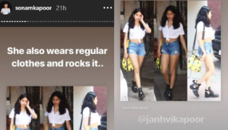 അതിനിടെ ജാൻവിയെ പിന്തുണച്ച് നടിയും സഹോദരിയുമായ സോനം കപൂറും രംഗത്തെത്തി. ഇൻസ്റ്റാഗ്രാമിലൂടെയായിരുന്നു സഹോദരിയ്ക്ക് പിൻന്തുണയുമായി സോനം എത്തിയത്. സാധരണ വസ്ത്രങ്ങളും ജാൻവി ധരിക്കാറുണ്ട്. അതെല്ലാം താരത്തിന് ഇണങ്ങുന്നവയുമാണ് എന്നും സോനം കുറിച്ചു. ഷോട്ട്സ് ധരിച്ചുളള ജാൻവിയുടെ ചിത്രം പങ്കുവെച്ചു കൊണ്ടായിരുന്നു സോനത്തിന്റെ മറുപടി. നടി ശ്രീദേവിയുടേയും നിർമ്മാതാവ് ബോണി കപൂറിന്റെയും മകളാണ് ജാൻവി കപൂര്.