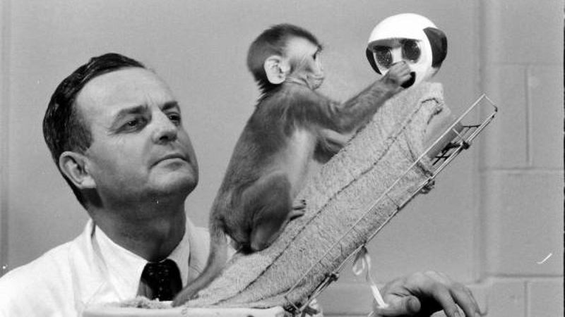 അമ്മക്കുരങ്ങുകളിൽ നിന്നും വേർപെടുത്തി പാർപ്പിച്ച കുട്ടിക്കുരങ്ങന്മാരെ കൃത്രിമമായി ഉണ്ടാക്കിയ രണ്ടുതരം അമ്മക്കുരങ്ങുരൂപങ്ങളോട് ഇടപെടീച്ച് അദ്ദേഹം നടത്തിയ പഠനങ്ങൾ ശ്രദ്ധേയമാണ്. ആദ്യത്തെ രൂപം ഇരുമ്പു കമ്പികൾ വളച്ചുണ്ടാക്കിയ പരുപരുത്ത ഒന്നായിരുന്നു. രണ്ടാമത്തേത്, കമ്പിയിലുള്ള ഫ്രയിമിന് മുകളിൽ തുണി ചുറ്റിയ കുറേക്കൂടി മൃദുലവും സൗമ്യവുമായ ദേഹത്തോട് കൂടിയ ഒരു അമ്മക്കുരങ്ങുരൂപവും. രണ്ടിന്റെയും ഉള്ളിൽ അമ്മയുടെ ശരീരത്തിന്റേതു പോലെ തോന്നിക്കുന്ന നേരിയ ഒരു ചൂടും കൃത്രിമമായി കൊടുത്തു അദ്ദേഹം.