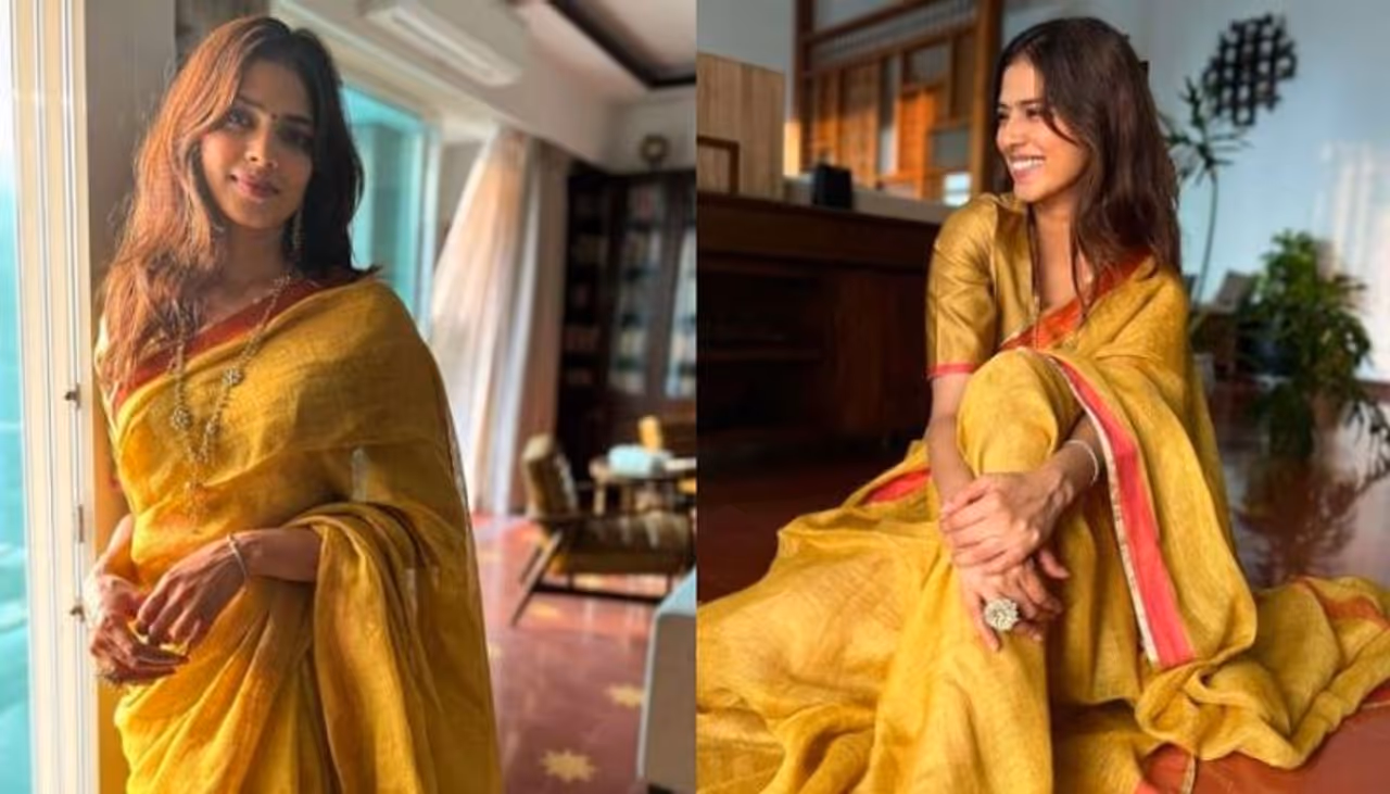 ഇപ്പോഴിതാ മാളവികയുടെ പുത്തന് ചിത്രങ്ങളാണ് (photos) സോഷ്യല് മീഡിയയില് വൈറലാകുന്നത്. മഞ്ഞ ലിനൻ സാരിയിലാണ് ഇത്തവണ മാളവിക തിളങ്ങുന്നത്. വലിയ പിങ്ക് സാറ്റിൻ ബോർഡറാണ് ഈ പ്ലെയിൻ സാരിയെ ഭംഗിയാക്കുന്നത്. സാരിയുടെ അതേ ഷെയ്ഡിലുള്ള ബ്ലൗസ് ആണ് താരം പെയര് ചെയ്തത്. ബ്ലൗസിലും പിങ്ക് ബോർഡര് നല്കിയിട്ടുണ്ട്.