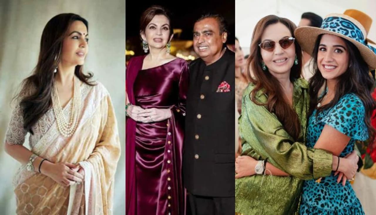ആഘോഷത്തിന്റെ ആദ്യ ദിനം ചിക്കന്കാരി ബോര്ഡറുള്ള ബീജ് നിറത്തിലുള്ള സാരിയാണ് നിത ധരിച്ചത്. അബൂ ജാനി ആന്റ് സന്ദീപ് ഖോസ്ലയാണ് ആ സാരി ഡിസൈന് ചെയ്തത്. അഞ്ച് ലെയറുകളുള്ള പേള് നെക്ക്ളേസും ജുംക സ്റ്റൈല് പേള് ഇയര് റിങ്ങുമാണ് ഇതിനൊപ്പം പെയര് ചെയ്തത്. രാത്രി നടന്ന ആഘോഷത്തില് പര്പ്പിള് നിറത്തിലുള്ള സില്ക്ക് ഗൗണ് ആണ് നിത ധരിച്ചത്.