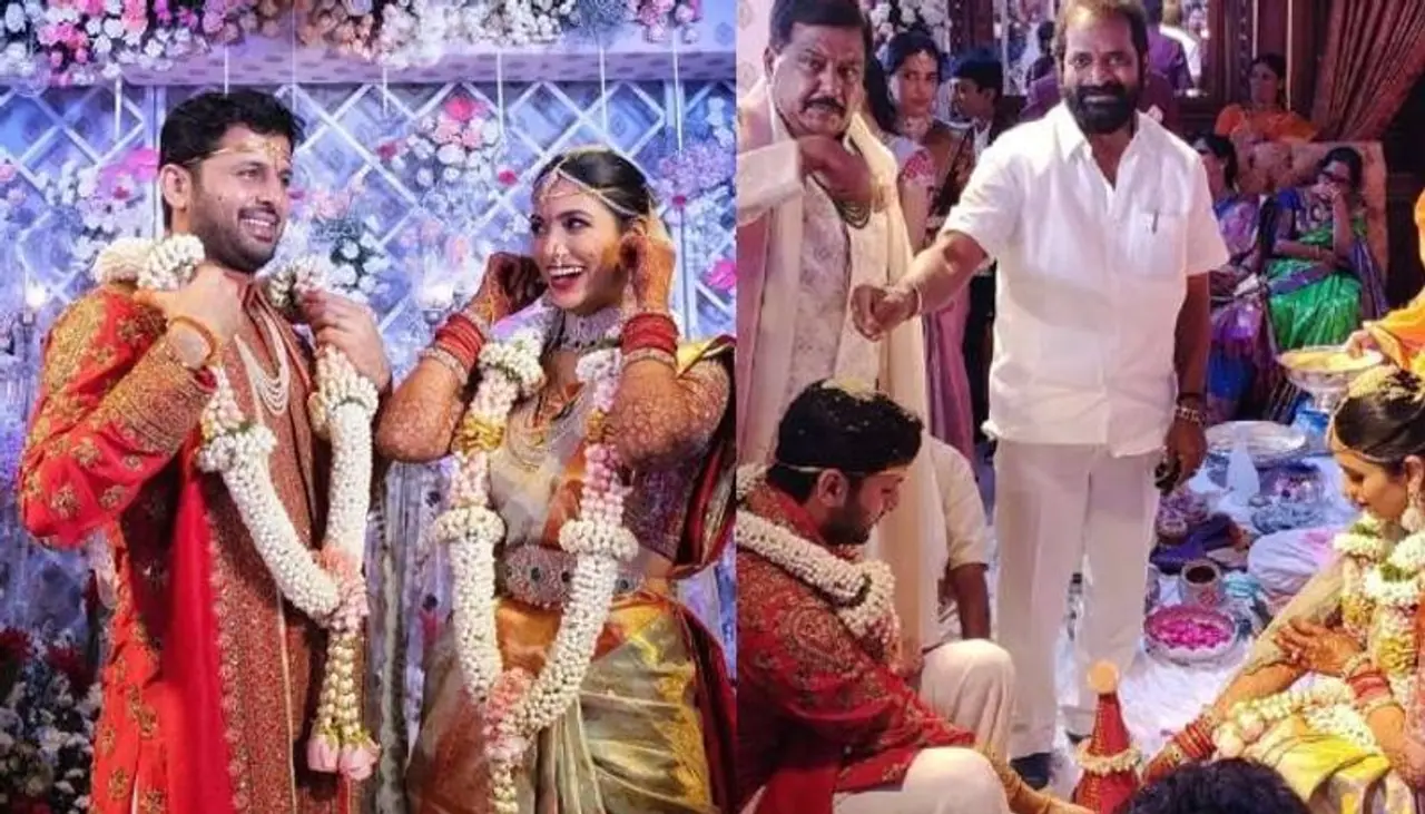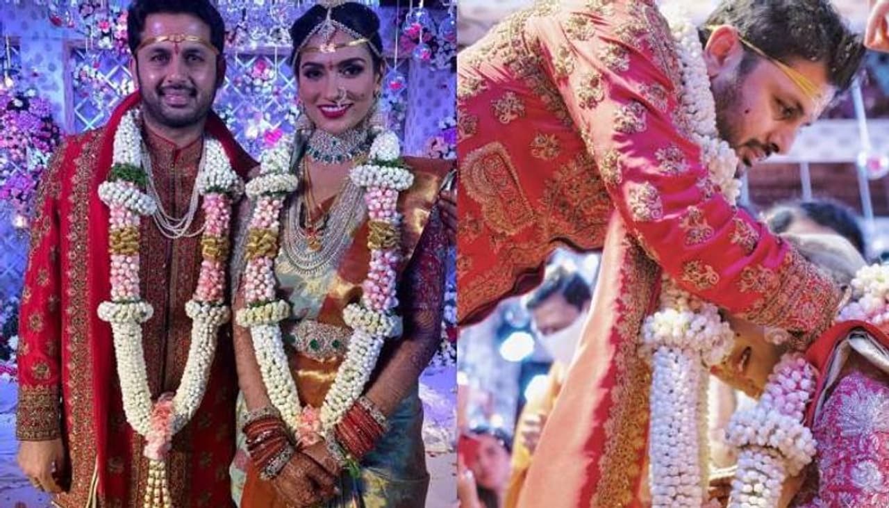 കൊറോണ കാലത്തെ വിവാഹങ്ങള്ക്കും ഇപ്പോള് മാസ്ക് കൂടിയേ തീരൂ. തെലുങ്ക് നടൻ നിതിന്റെ വിവാഹ ചിത്രങ്ങളാണ് ഇപ്പോള് സോഷ്യല് മീഡിയയില് ശ്രദ്ധ നേടുന്നത്.