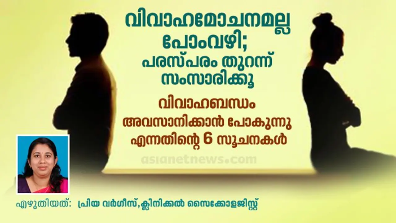 വിവാഹബന്ധം പ്രതിസന്ധിയിലാണ് എന്നതിന്റെ സൂചനകള്...