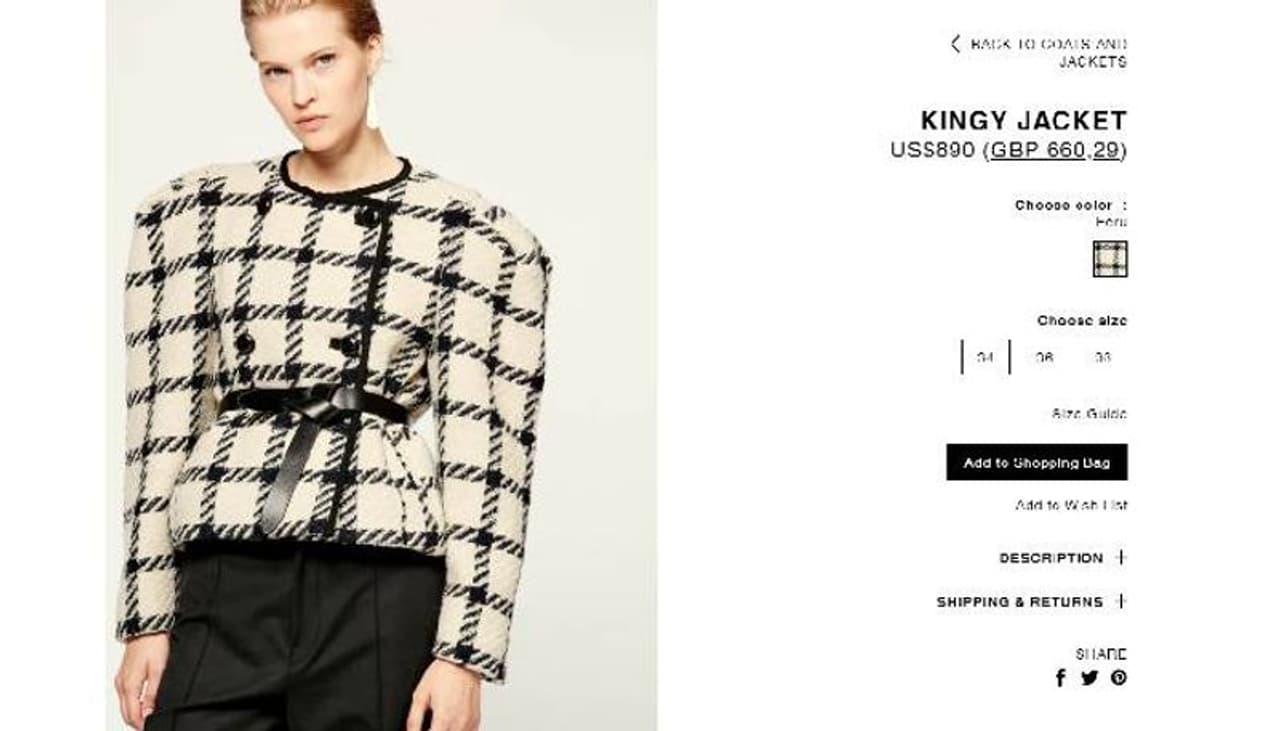 ഗ്രേ നിറത്തിലുള്ള മിനി സ്കര്ട്ടിനൊപ്പം ഓഫ് വൈറ്റ്- ബ്ലാക്ക് ചെക്ക് ജാക്കറ്റാണ് താരം ധരിച്ചിരിക്കുന്നത്. 64,606 രൂപയാണ് ഈ ജാക്കറ്റിന്റെ വില. 33,392 രൂപയാണ് സ്കര്ട്ടിന്റെ വില.