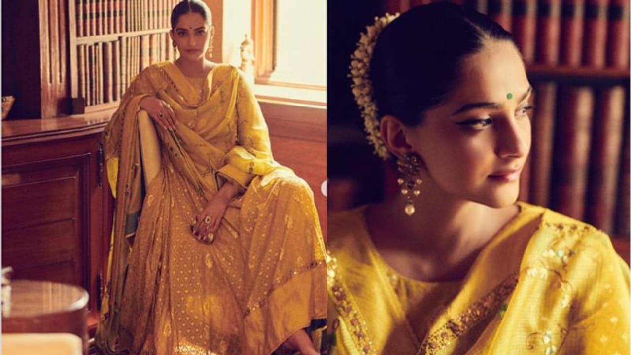 യെല്ലോ നിറത്തിലുള്ള സല്വാറില് സുന്ദരിയായി സോനം കപൂര്. എംബ്രോയ്ഡറി ചെയ്ത മനോഹരമായ കുര്ത്തയും അതിനൊപ്പം അതേപോലെ വര്ക്കുകള് ചെയ്ത് സെറ്റുമാണ് താരം ധരിച്ചത്. ഹെവി കമ്മലും പൂവുമൊക്കെ അണിഞ്ഞ് ട്രെഡീഷണല് ലുക്കാണ് താരം തെരഞ്ഞെടുത്തത്.