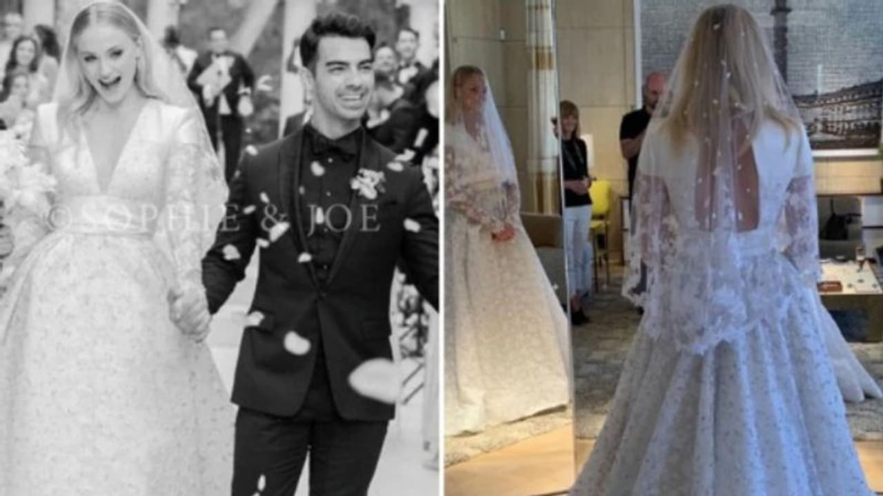 സോഫി ടർണര് ധരിച്ച വിവാഹഗൗണാണ് ഇപ്പോള് ഫാഷന്ലോകം ചര്ച്ച ചെയ്യുന്നത്. വെളള പേള് ഗൗണാണ് സോഫി വിവാഹത്തിന് ധരിച്ചത്. Nicolas Ghesquière ആണ് ഗൗണ് ഡിസൈന് ചെയ്തത്. പത്തില് കൂടുതല് പേരാണ് ഈ ഗൗണ് തുന്നിയെടുക്കാന് പ്രവര്ത്തിച്ചത്.