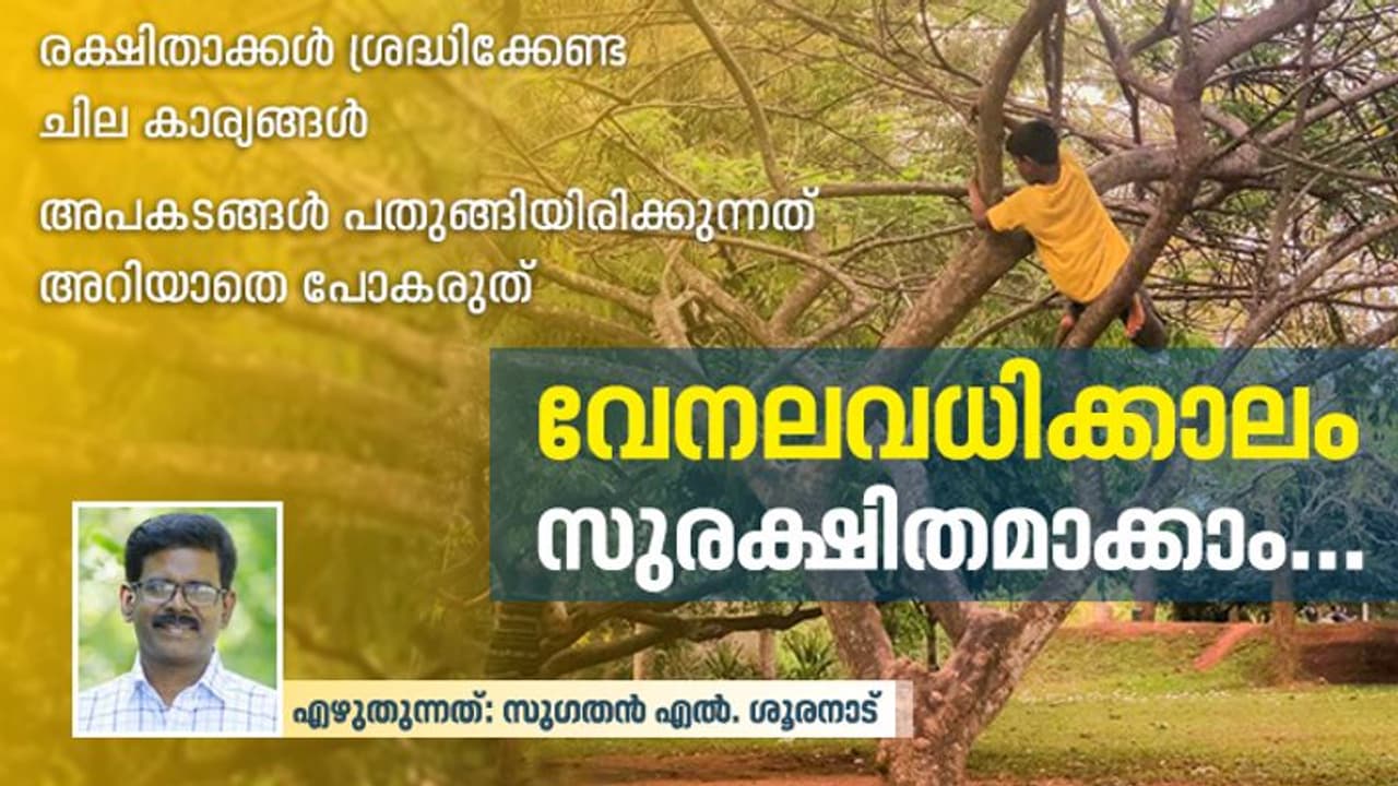 ഒരു മധ്യവേനൽ അവധിക്കാലം കൂടി നമ്മുടെ കുട്ടികൾക്ക് മുന്നിൽ സംജാതമായിരിക്കുന്നു. മധ്യവേനൽകാലം എന്നും നമുക്ക് പേടി സ്വപ്നം തന്നെ. സ്കൂൾ ദിവസങ്ങളിൽ രക്ഷിതാക്കൾക്ക് ഒരു പരിധിവരെ മനസമാധാനം ഉള്ള സ്ഥിതിയായിരുന്നു. എന്നാൽ ആധുനിക കാലഘട്ടത്തിലെ അവധിക്കാലം പല കാരണങ്ങൾ കൊണ്ട് ആധിയുടെയും അങ്കലാപ്പിന്റെയും നേർ കാഴ്ചയാവുകയാണ്. കഴിഞ്ഞ കാലങ്ങളിൽ അവധിക്കാലത്തെ പലവിധ അപകടങ്ങളിലൂടെ മാത്രം നമുക്ക് നഷ്ടപ്പെട്ടത് നിരവധി വിലപ്പെട്ട ജീവനുകളാണ്. വേനലവധിക്കാലം നമ്മുടെ കുട്ടികൾക്ക് എങ്ങനെ സന്തോഷത്തിന്റെയും സമാധാനത്തിന്റെയും നിമിഷങ്ങളാക്കി മാറ്റാം.