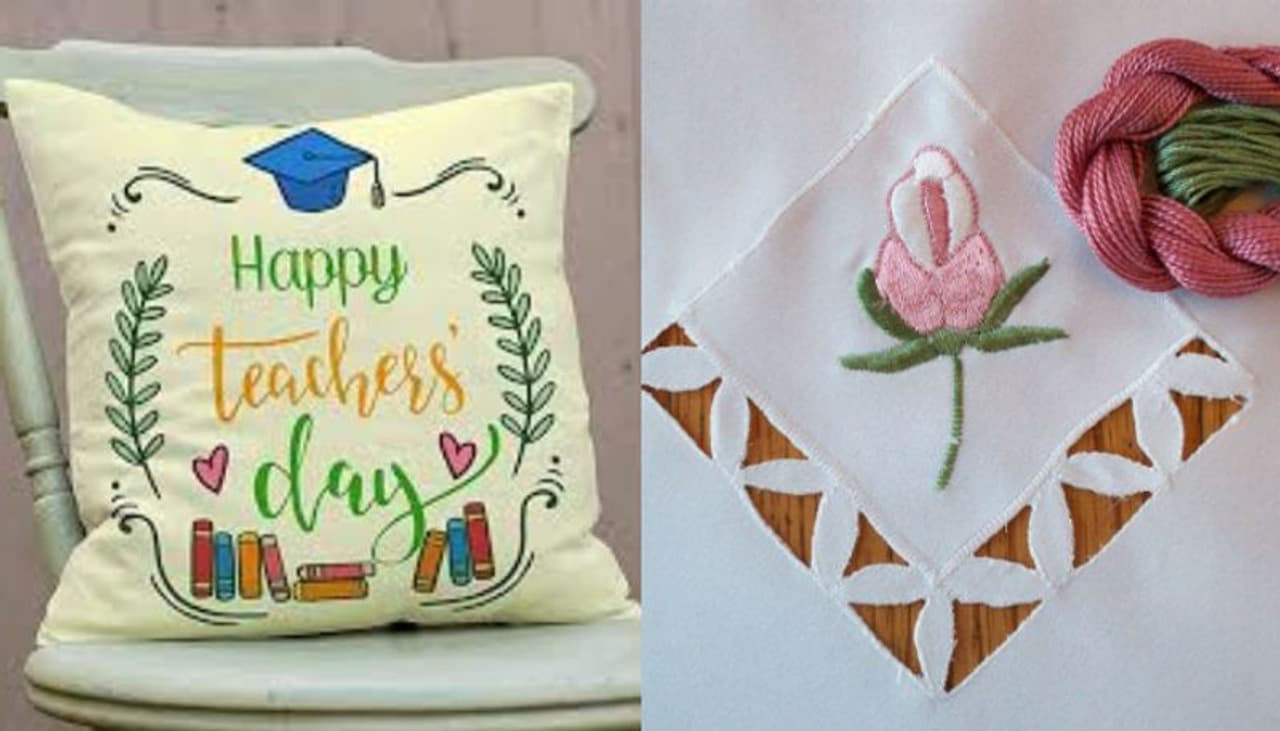 നിങ്ങളുടെ എംബ്രോയിഡറി വര്ക്കുകള് സമ്മാനമായി നല്കാം. പൂക്കളോ മറ്റുമൊക്കെ എംബ്രോയിഡറി ചെയ്ത തൂവാല അധ്യാപകര്ക്ക് സമ്മാനിക്കാം.
