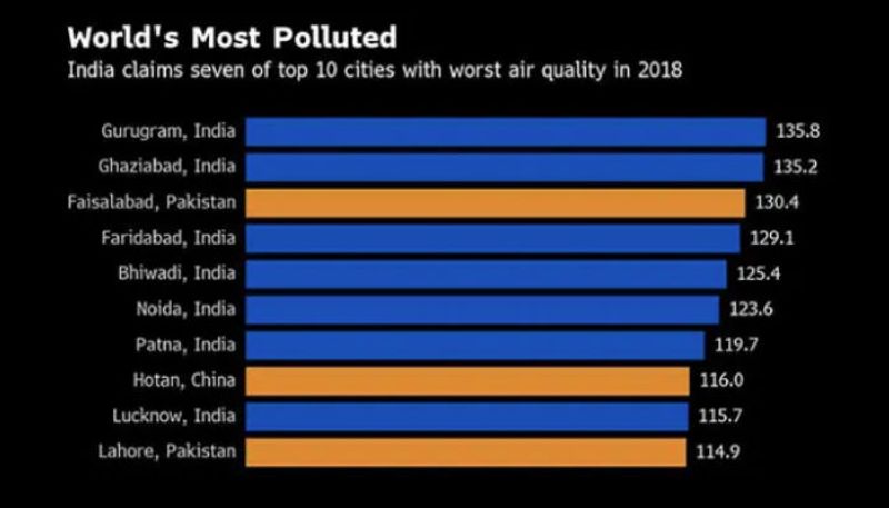 'ഐക്യൂ എയര് എയര്വിഷ്വല്'ഉം 'ഗ്രീന് പീസ്'ഉം ചേര്ന്ന് നടത്തിയ സര്വേയുടെ ഫലമാണ് നമ്മുടെ രാജ്യത്തിന്റെ യഥാര്ത്ഥത്തിലുള്ള അവസ്ഥ വെളിപ്പെടുന്നത്. 2018ലെ അവസ്ഥ മുന്നിര്ത്തി ലോകത്തിലെ ഏറ്റവും മലിനമായ നഗരങ്ങളുടെ കണക്കാണ് ഇവര് എടുത്തിരിക്കുന്നത്