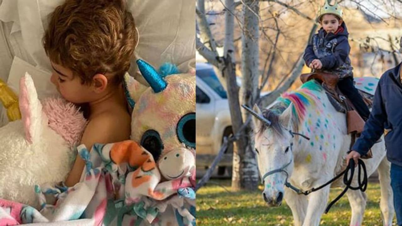 വാഷിംഗ്ടണ്: അഞ്ചു വയസ്സുകാരന് വ്യാട്ട് ഹാസ് ഒട്ടും പ്രതീക്ഷിച്ചിരുന്നില്ല തന്റെ സഹപാഠികളും രക്ഷിതാക്കളും ചേര്ന്ന് ഇത്തരമൊരു യാത്രയയപ്പ് നല്കുമെന്ന്. വ്യാട്ട് ഏറെ നാളായി ആഗ്രഹിച്ചിരുന്ന കാര്യമാണ് അവർ സാധിച്ച് കൊടുത്തത്. സാങ്കല്പിക കഥാപാത്രമായ 'യൂണികോണ്' വേഷമിട്ട് കുതിരയുടെ പുറത്തിരുന്ന് യാത്ര ചെയ്യണമെന്നുള്ളത് വ്യാട്ടിന്റെ ഏറ്റവും വലിയ ആഗ്രഹമായിരുന്നു.