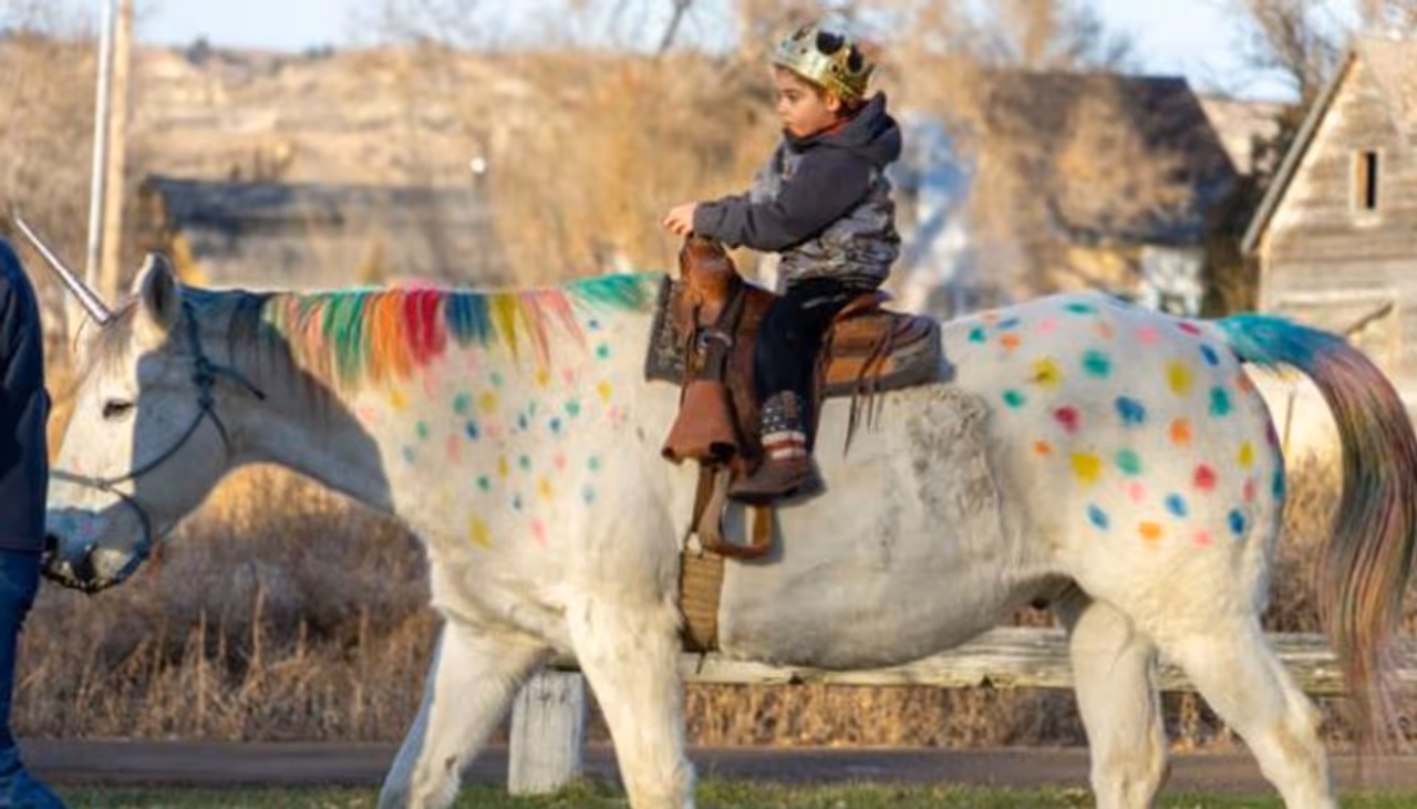 തന്റെ ഫാമിലെ ഒരു കുതിരക്കുട്ടിയേയും നീല്സണ് കൊണ്ടുവന്നിരുന്നു. നിറങ്ങളില് കുളിച്ച ആ വെള്ളക്കുതിരയുടെ നെറ്റിയില് ഒരു കൊമ്പ് വച്ചുപിടിപ്പിച്ചു. വ്യാട്ടിന്റെ ഇഷ്ട കഥാപാത്രമായ യൂണികോണ് (കുതിരയ്ക്ക് സമാനമായതും ഒറ്റകൊമ്പുള്ളതുമായ മൃഗം) പോലെയായിരുന്നു കുതിരക്കുട്ടിയെ അലങ്കരിച്ചത്.